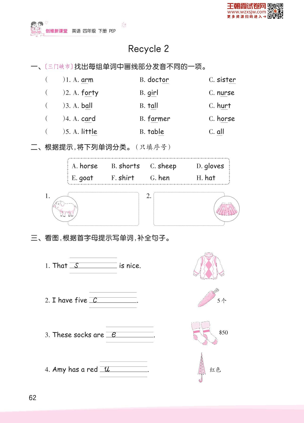 2023下册四年级英语人教PEP版 Recycle 2 _R230206152242932