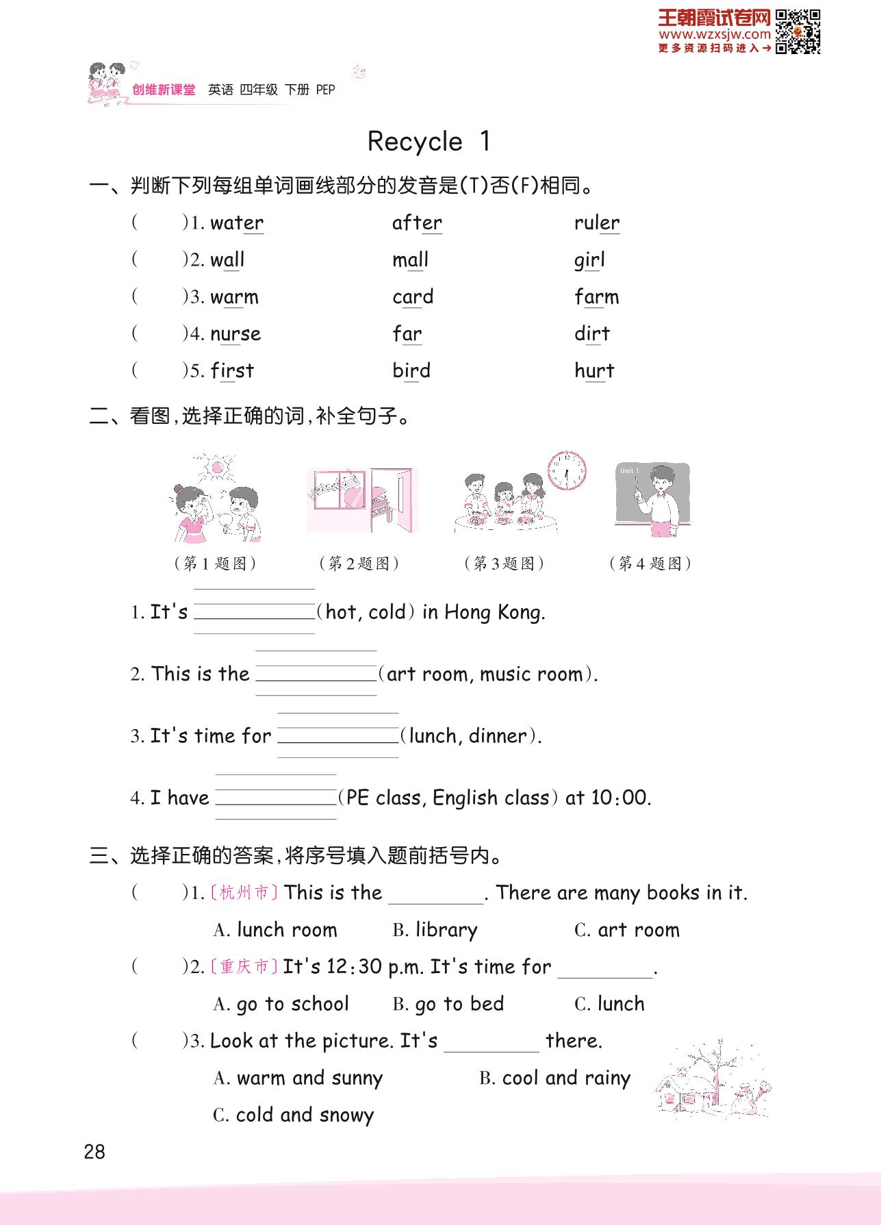 2023下册四年级英语人教PEP版 Recycle 1 _R230206152243967