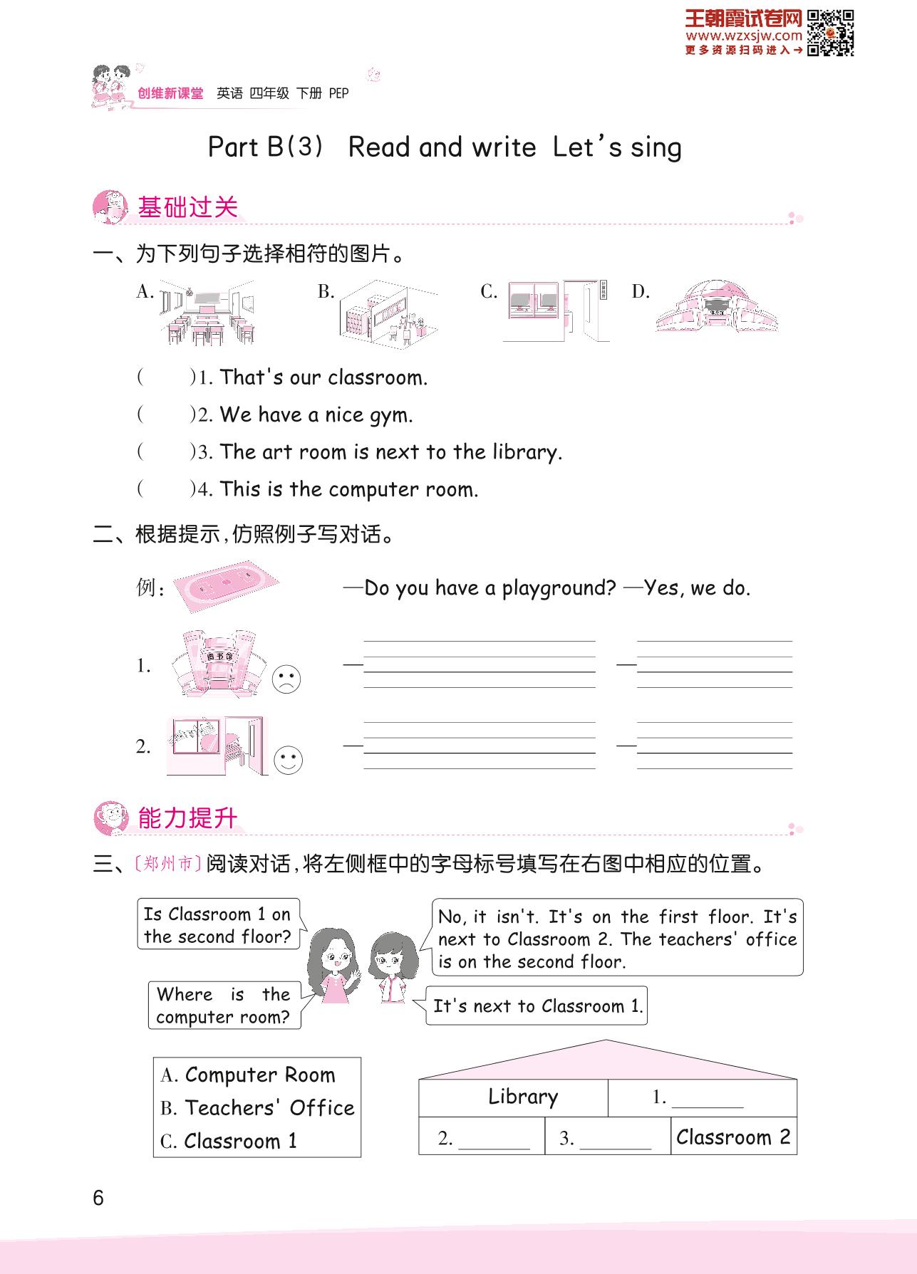 2023下册四年级英语人教PEP版 Unit 1 Part B(3)—Read and write Let’s sing