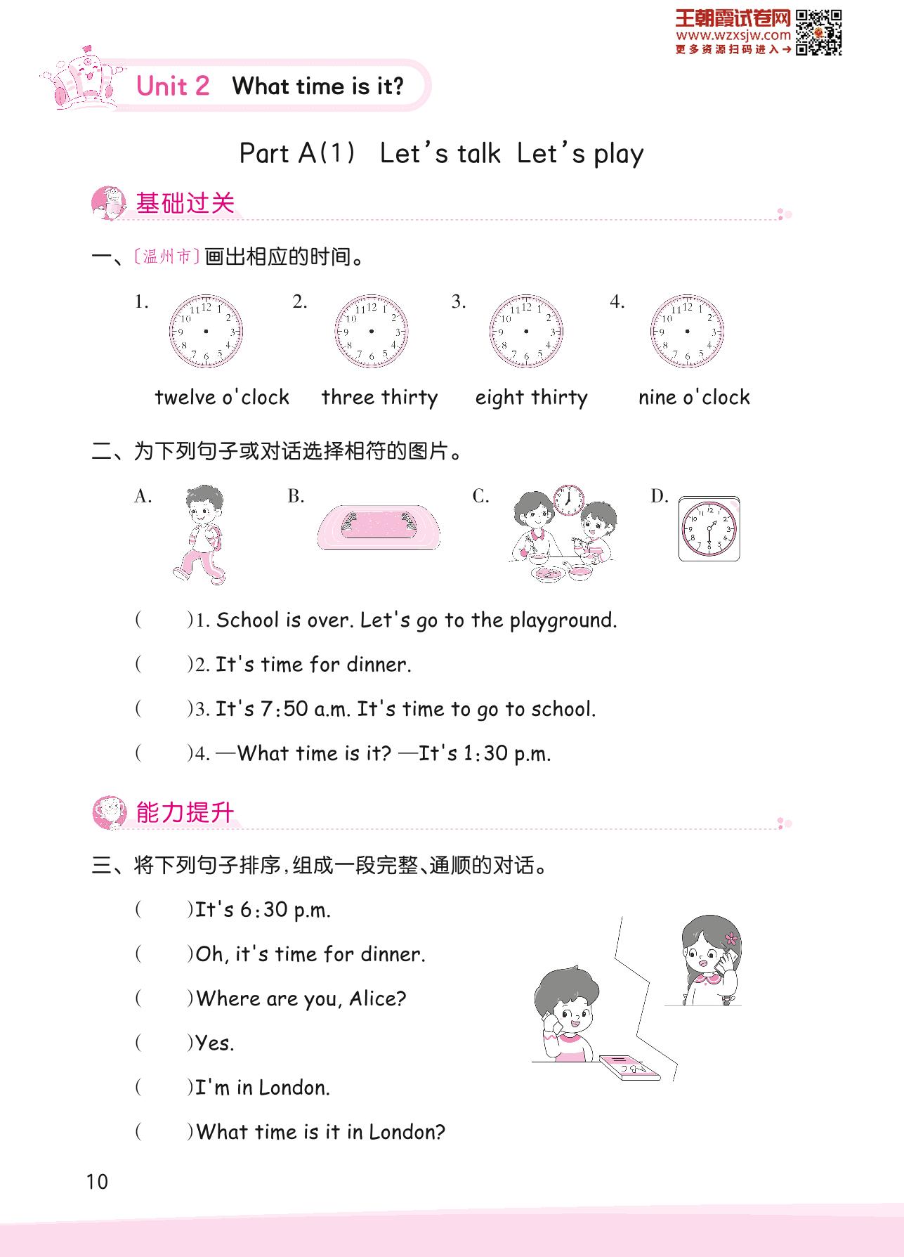 2023下册四年级英语人教PEP版 Unit 2 Part A(1)—Let’s talk Let’s play