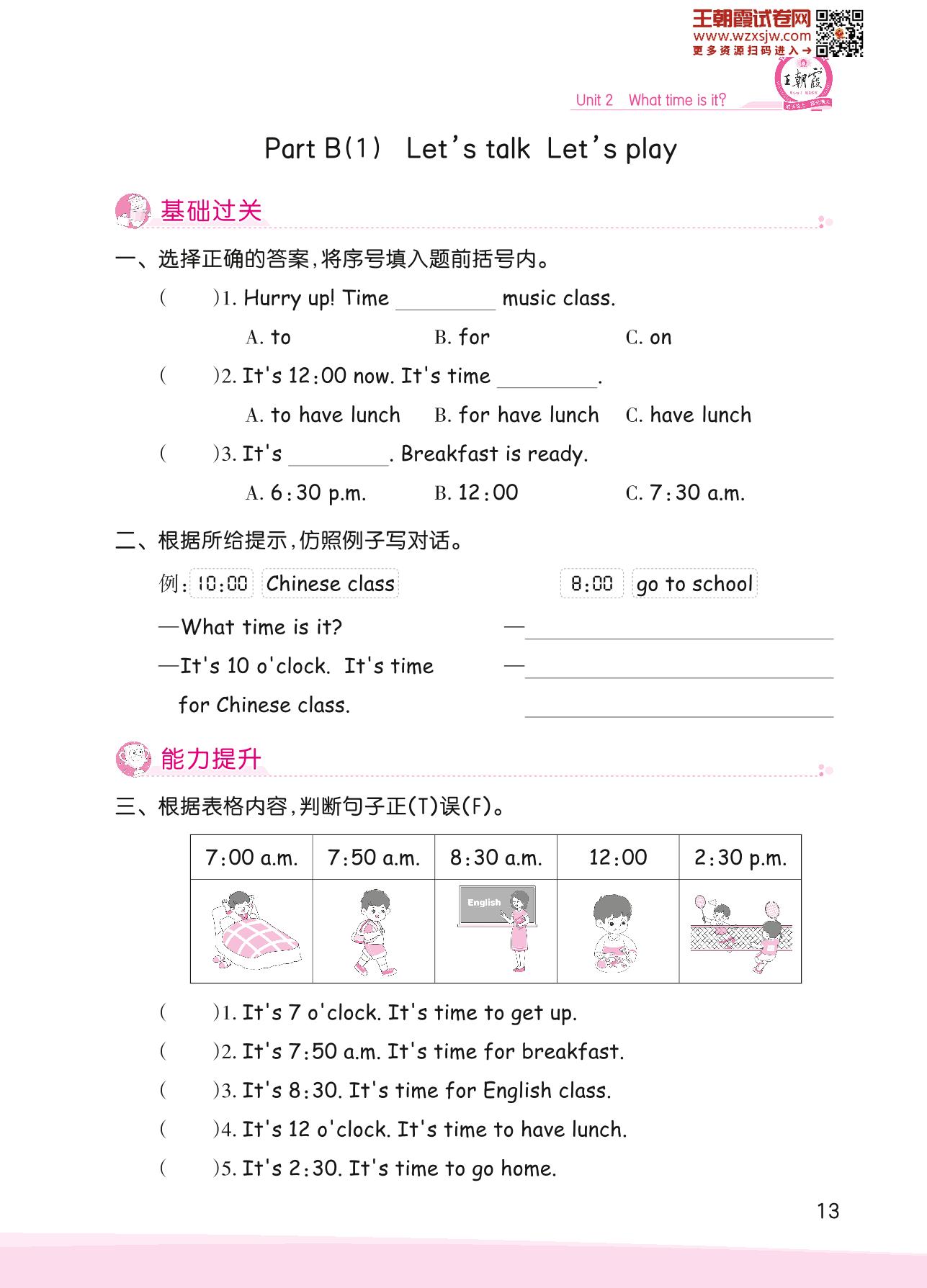 2023下册四年级英语人教PEP版 Unit 2 Part B(1)—Let’s talk Let’s play