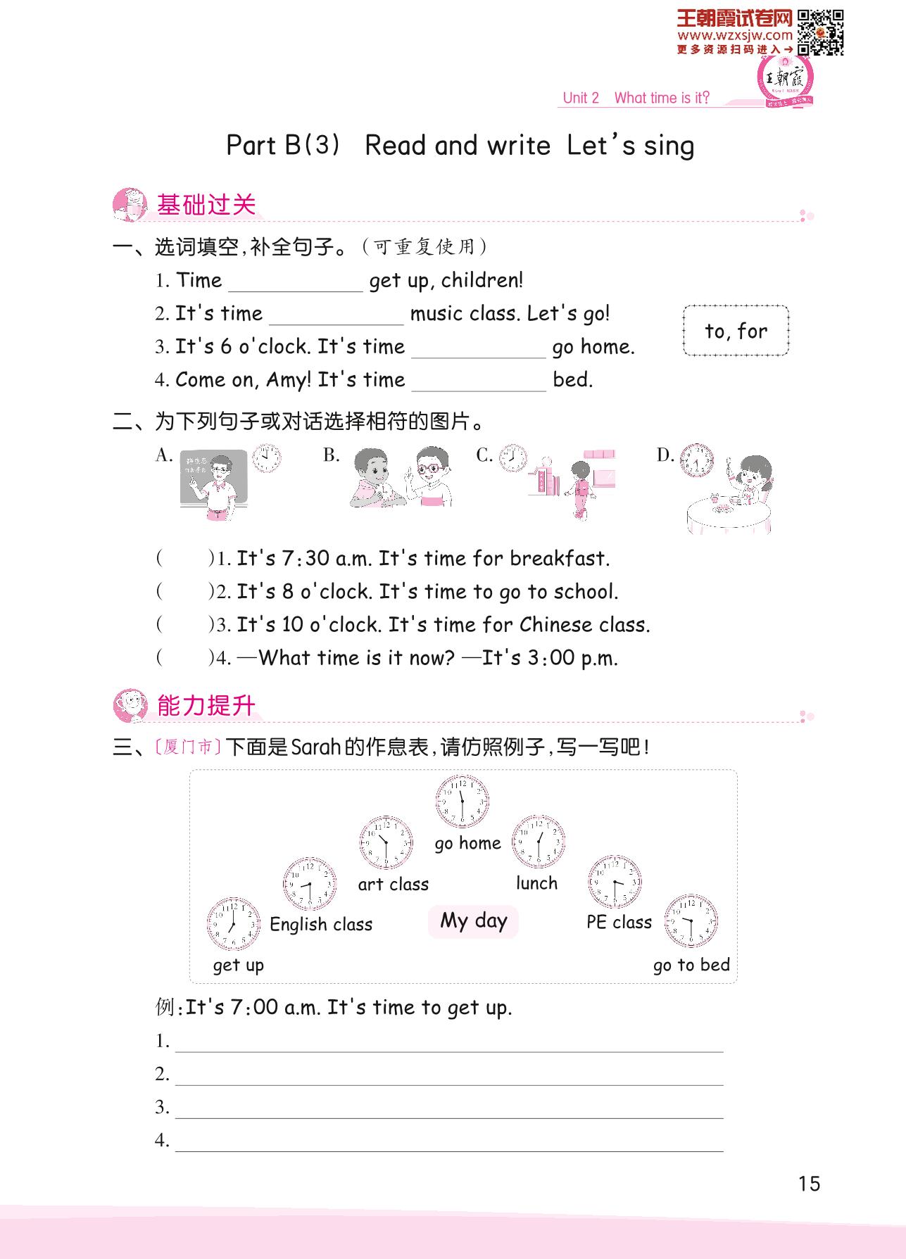 2023下册四年级英语人教PEP版 Unit 2 Part B(3)—Read and write Let’s sing