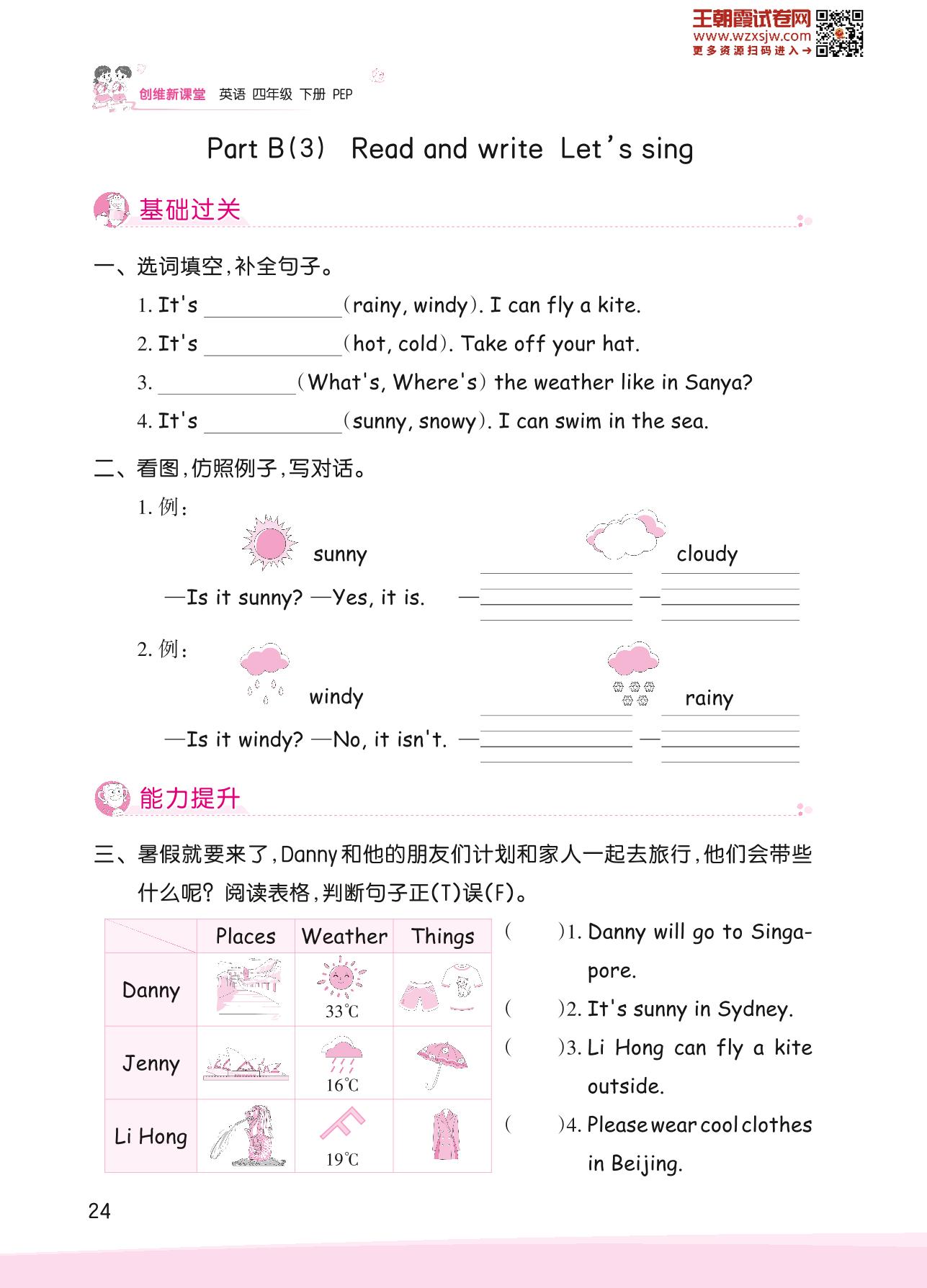 2023下册四年级英语人教PEP版 Unit 3 Part B(3)—Read and write Let’s sing
