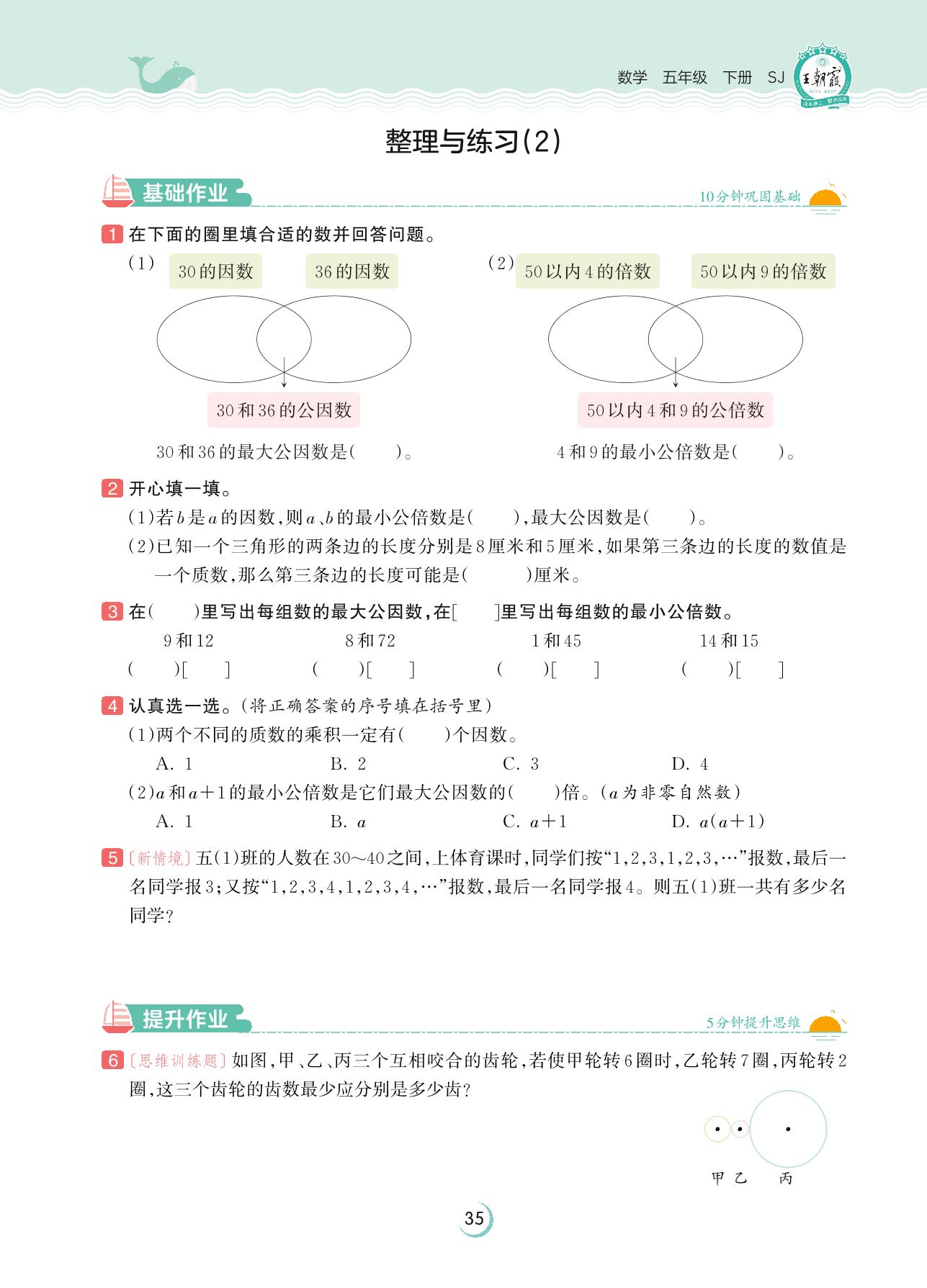 2023下册五年级数学苏教版 第三单元 因数与倍数——整理与练习(2)