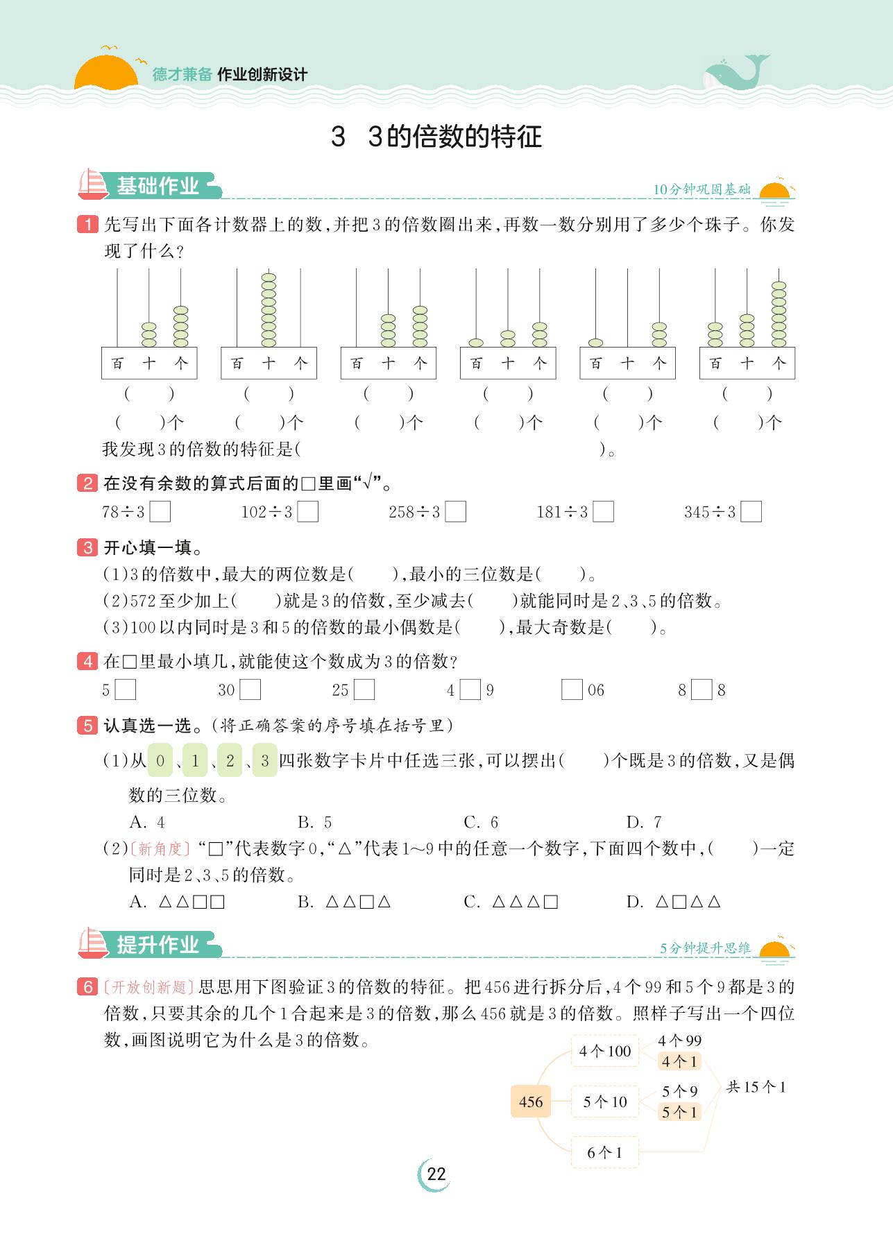 2023下册五年级数学苏教版 第三单元 因数与倍数——3 3的倍数的特征