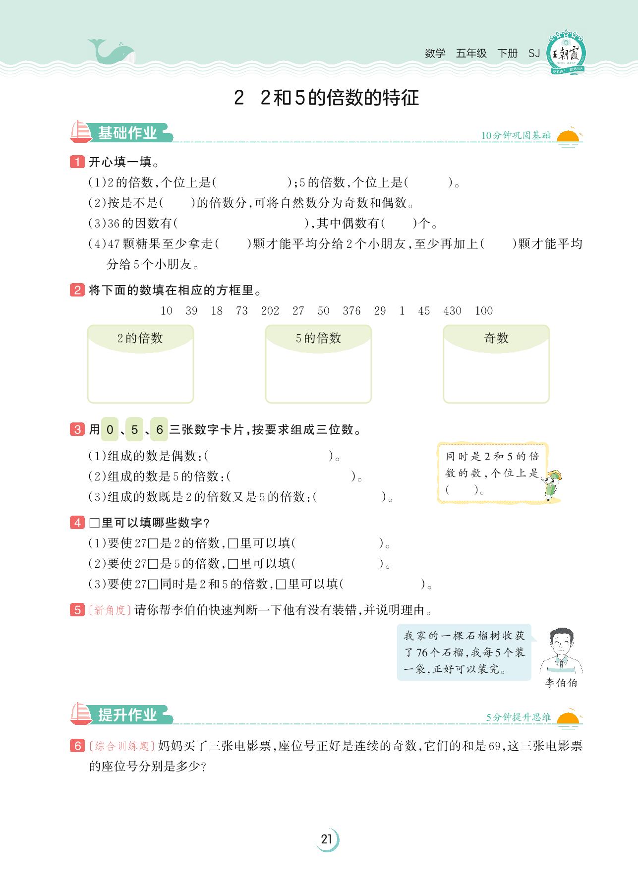 2023下册五年级数学苏教版 第三单元 因数与倍数——2 2和5的倍数的特征