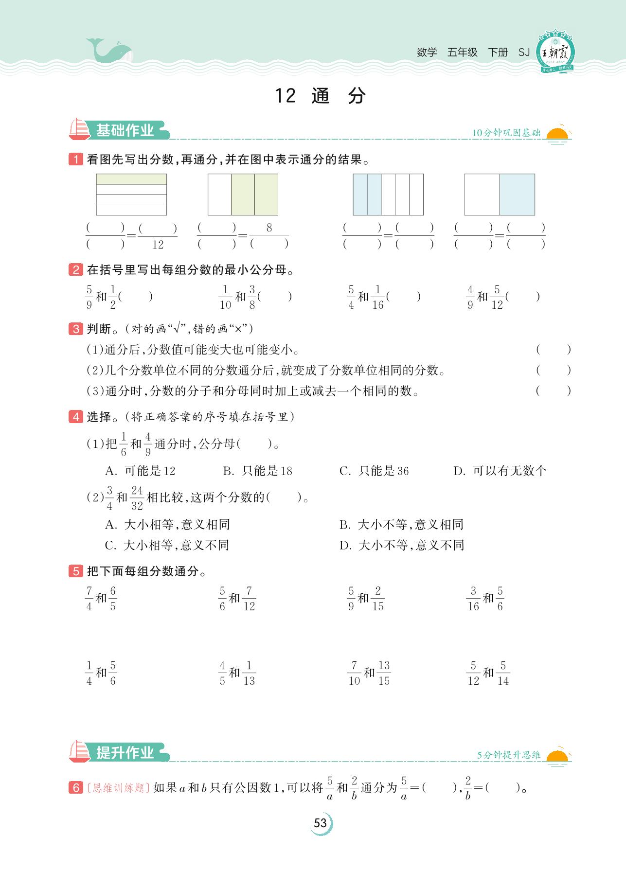 2023下册五年级数学苏教版 第四单元 分数的意义和性质——12 通分