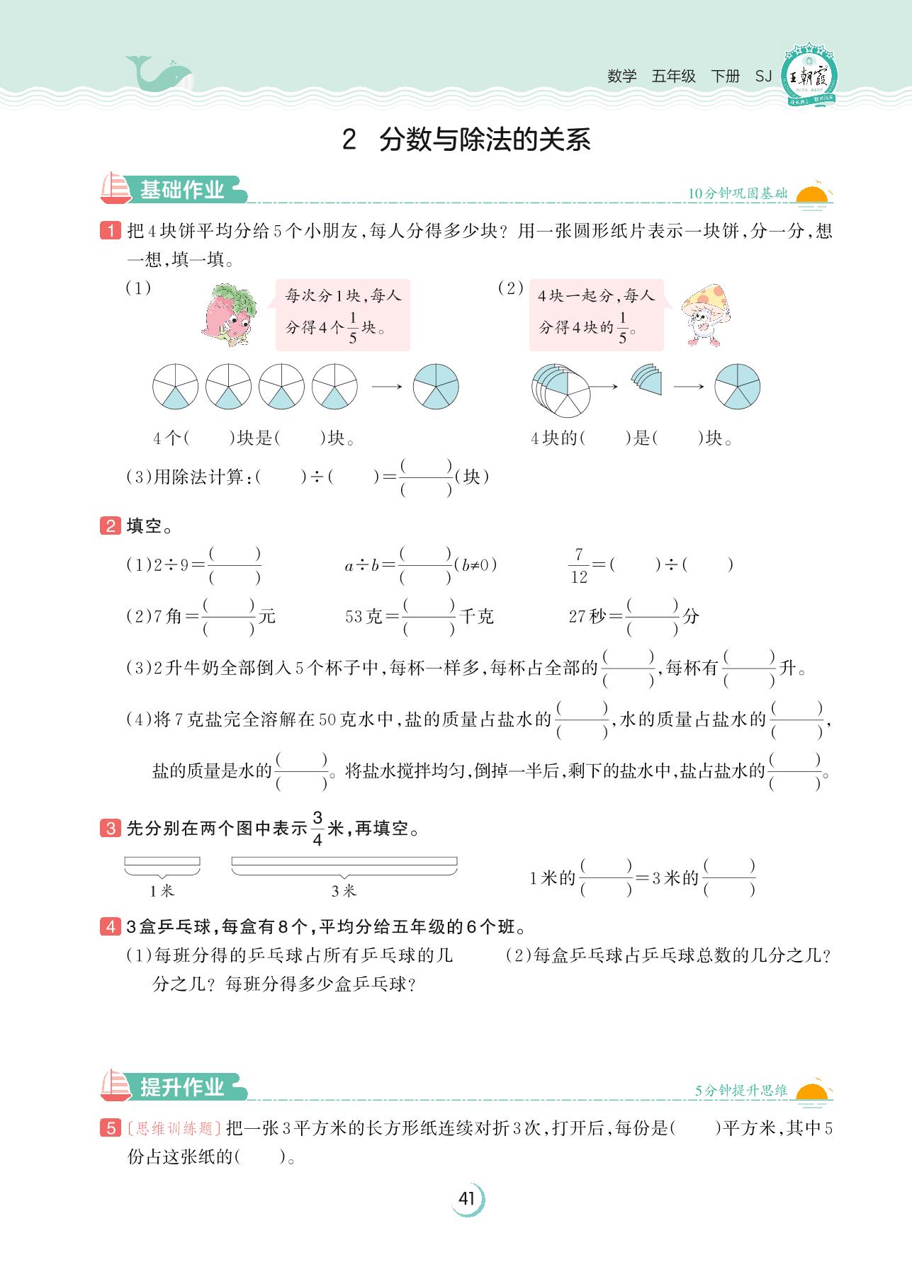 2023下册五年级数学苏教版 第四单元 分数的意义和性质——2 分数与除法的关系