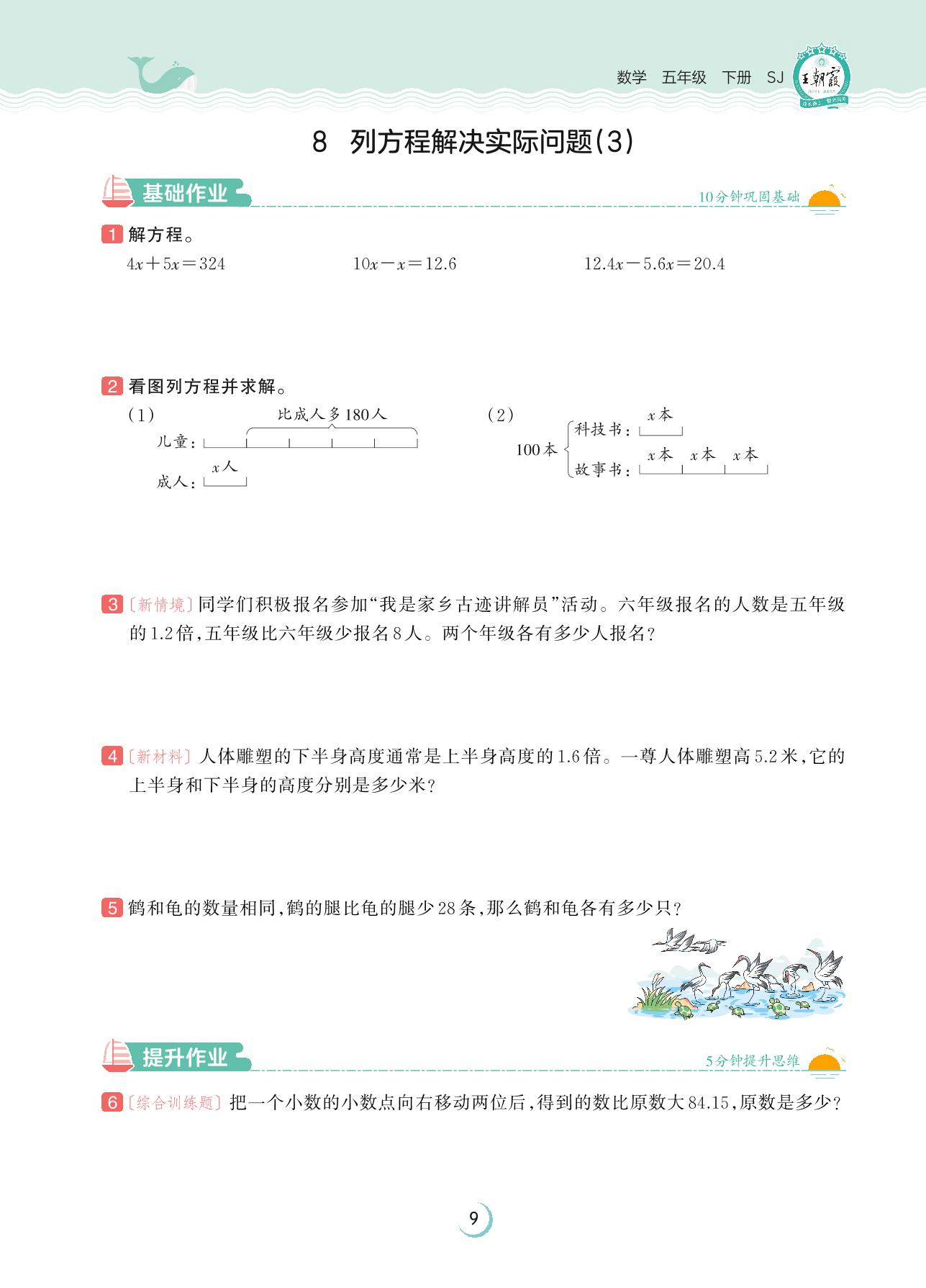 2023下册五年级数学苏教版 第一单元 简易方程——8 列方程解决实际问题(3)