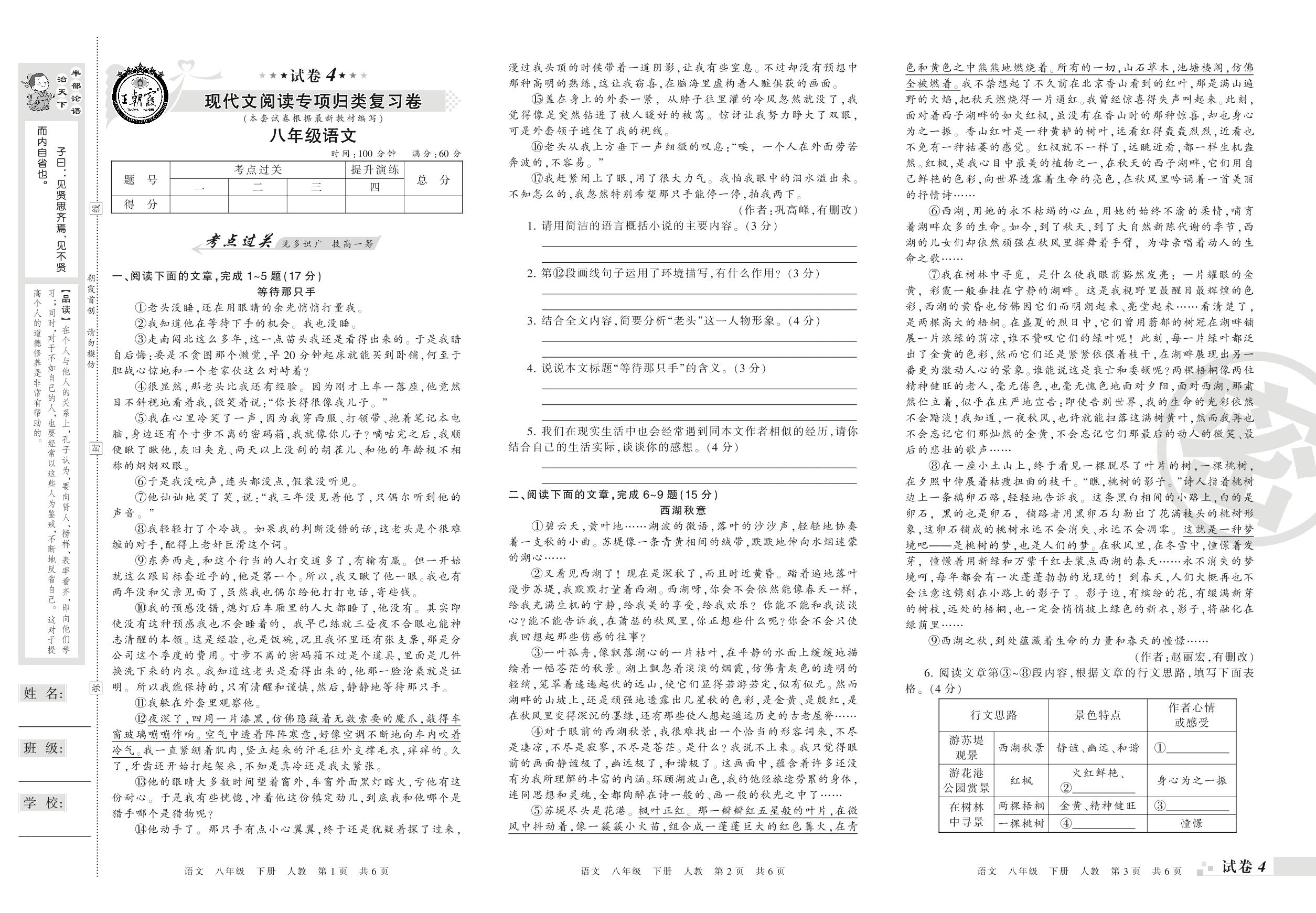 王朝霞期末专项卷——现代文阅读专项归类复习卷八年级下册语文(人教版)_R210802190749【4】