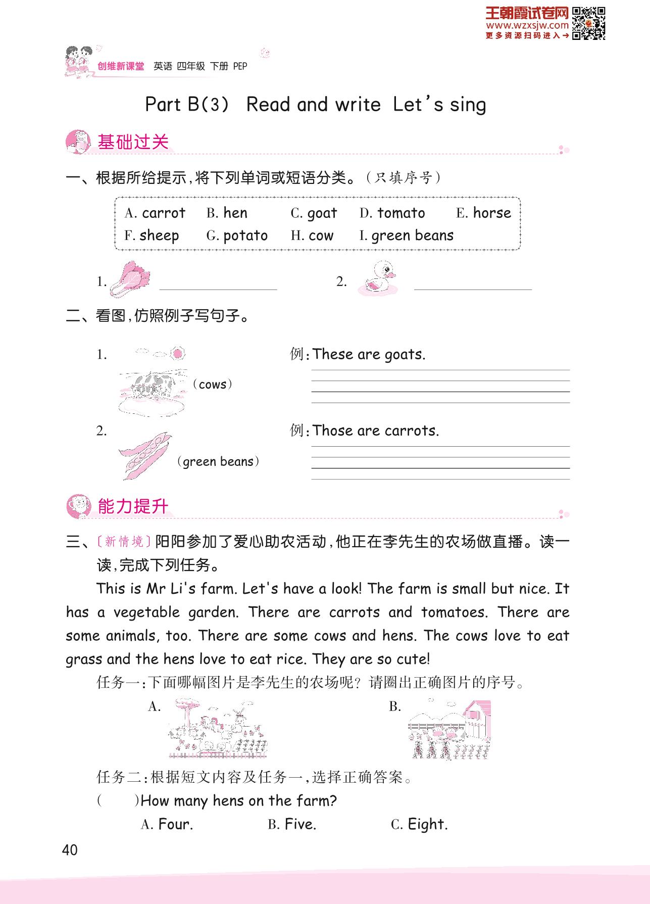 2023下册四年级英语人教PEP版 Unit 4 Part B(3)—Read and write Let’s sing