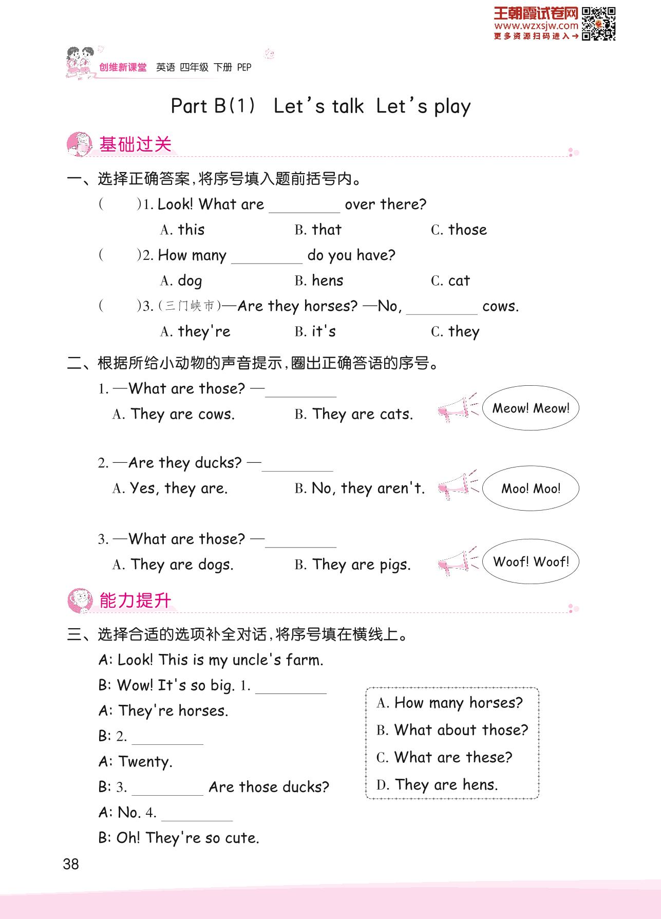 2023下册四年级英语人教PEP版 Unit 4 Part B(1)—Let’s talk Let’s play