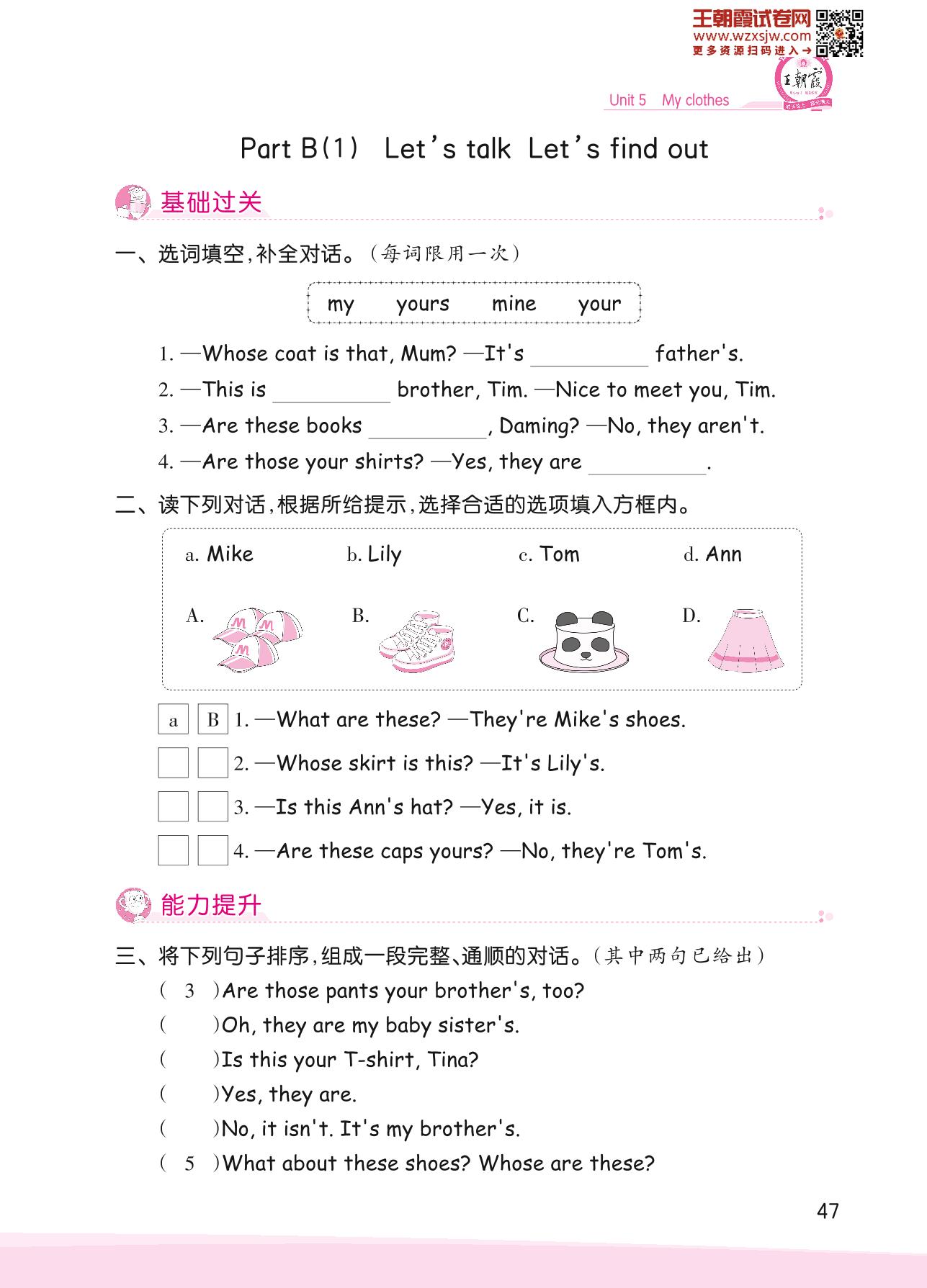 2023下册四年级英语人教PEP版 Unit 5 Part B(1)—Let’s talk Let’s find out