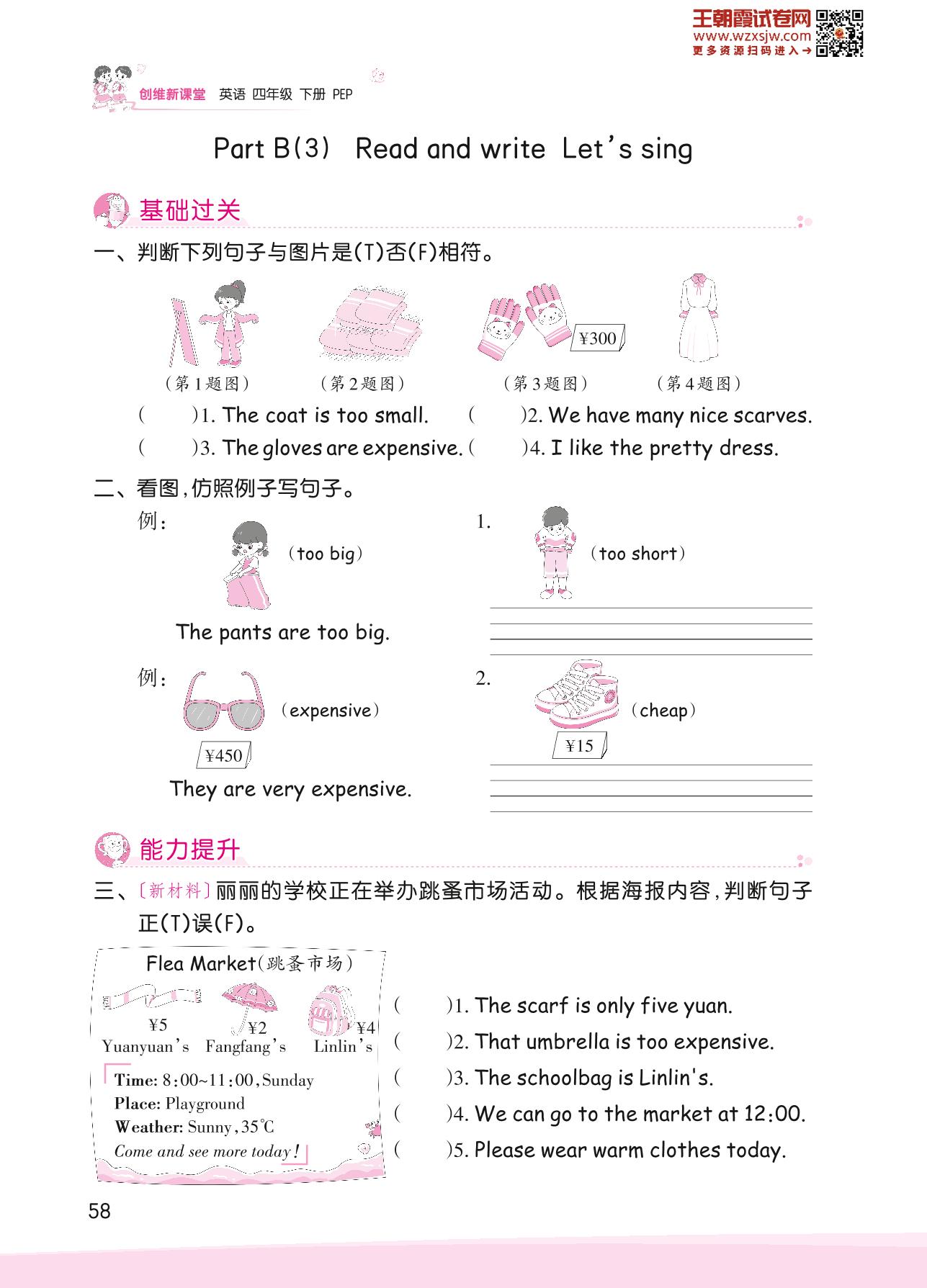 2023下册四年级英语人教PEP版 Unit 6 Part B(3)—Read and write Let’s sing