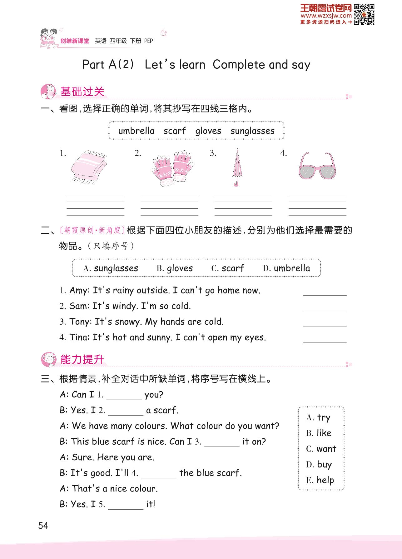 2023下册四年级英语人教PEP版 Unit 6 Part A(2)—Let’s learn Complete and say