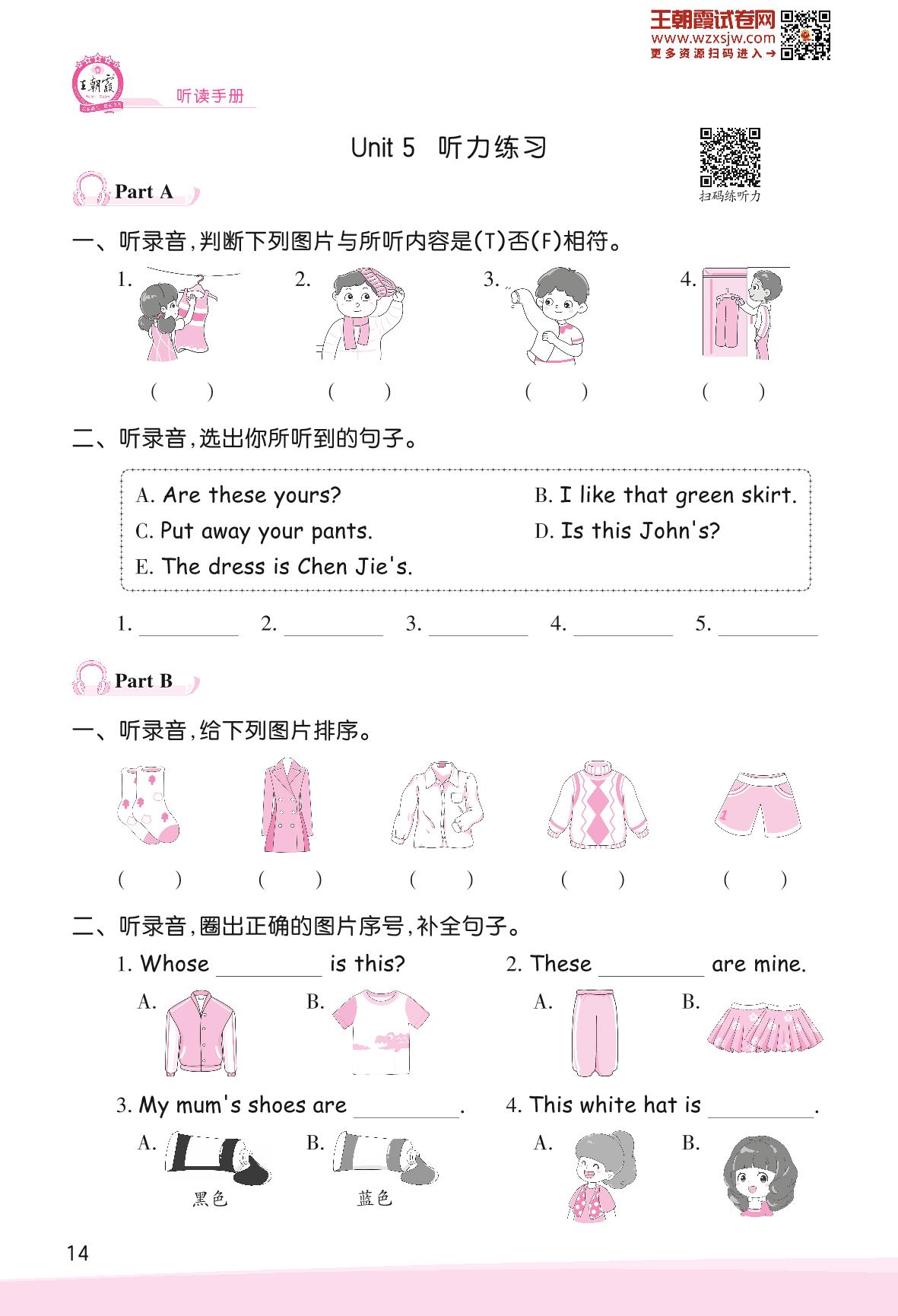 2023下册四年级英语人教PEP版 Unit 5 My clothes—Part A、Part B 听力练习