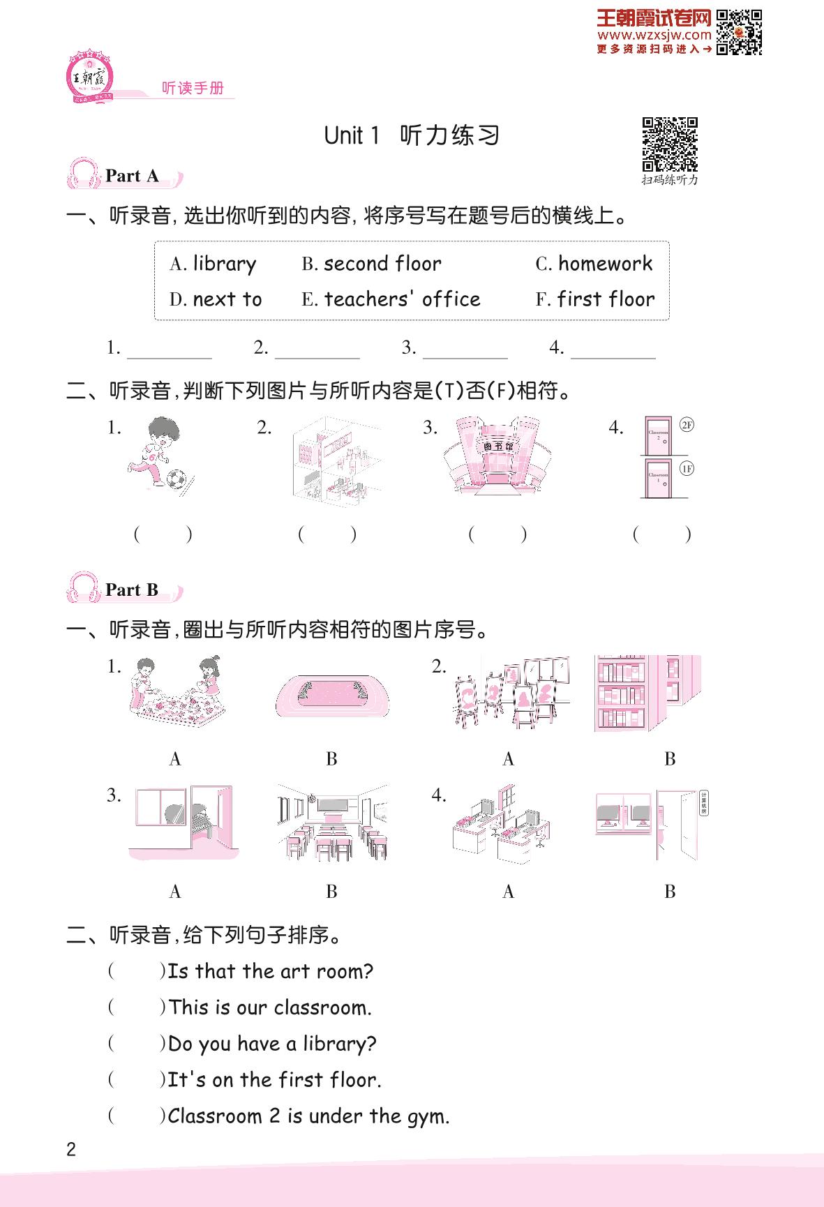 2023下册四年级英语人教PEP版 Unit 1 My school—Part A、Part B 听力练习