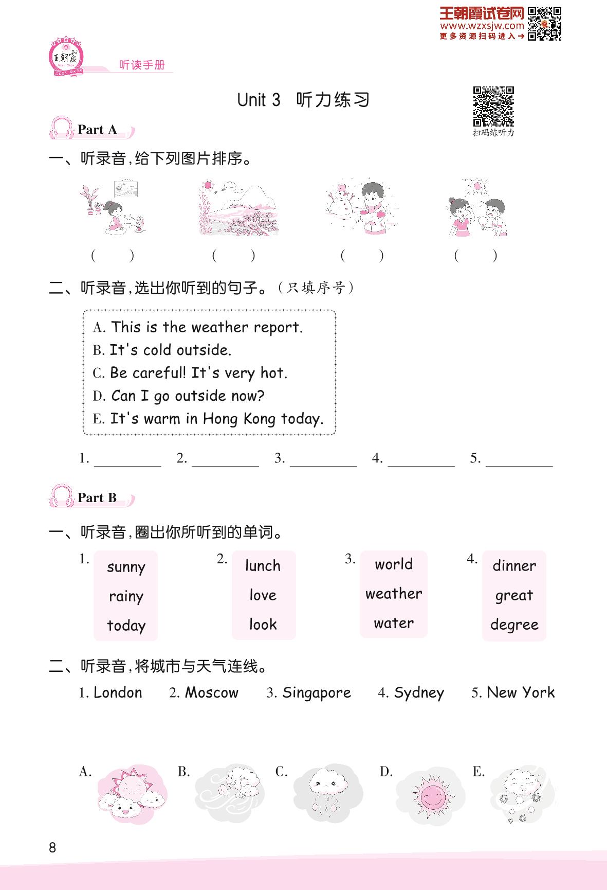 2023下册四年级英语人教PEP版 Unit 3 Weather—Part A、Part B 听力练习