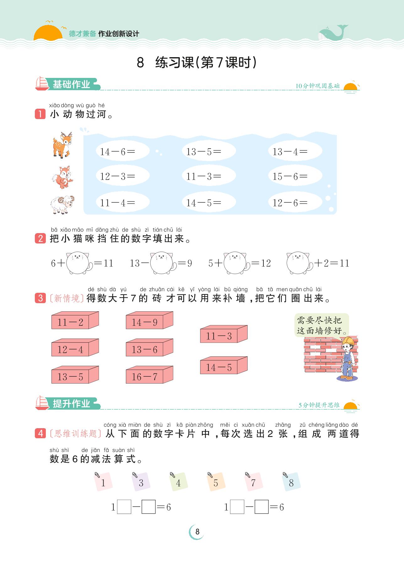 2023下册一年级数学苏教版 第一单元 20以内的退位减法——8 练习课(第7课时)