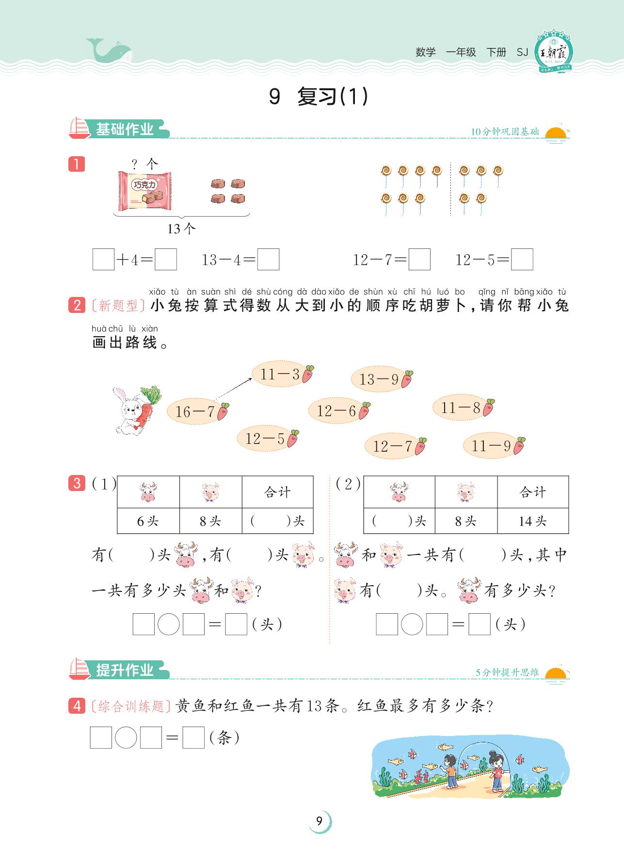 2023下册一年级数学苏教版 第一单元 20以内的退位减法——9 复习(1)