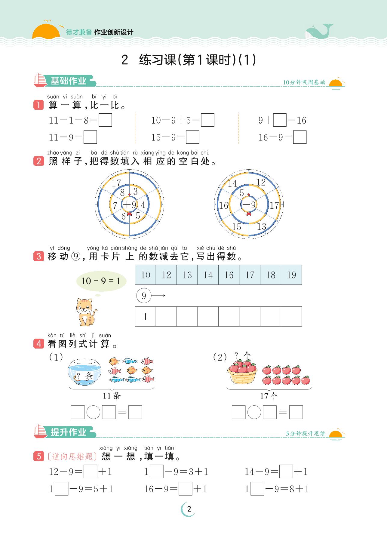 2023下册一年级数学苏教版 第一单元 20以内的退位减法——2 练习课(第1课时)