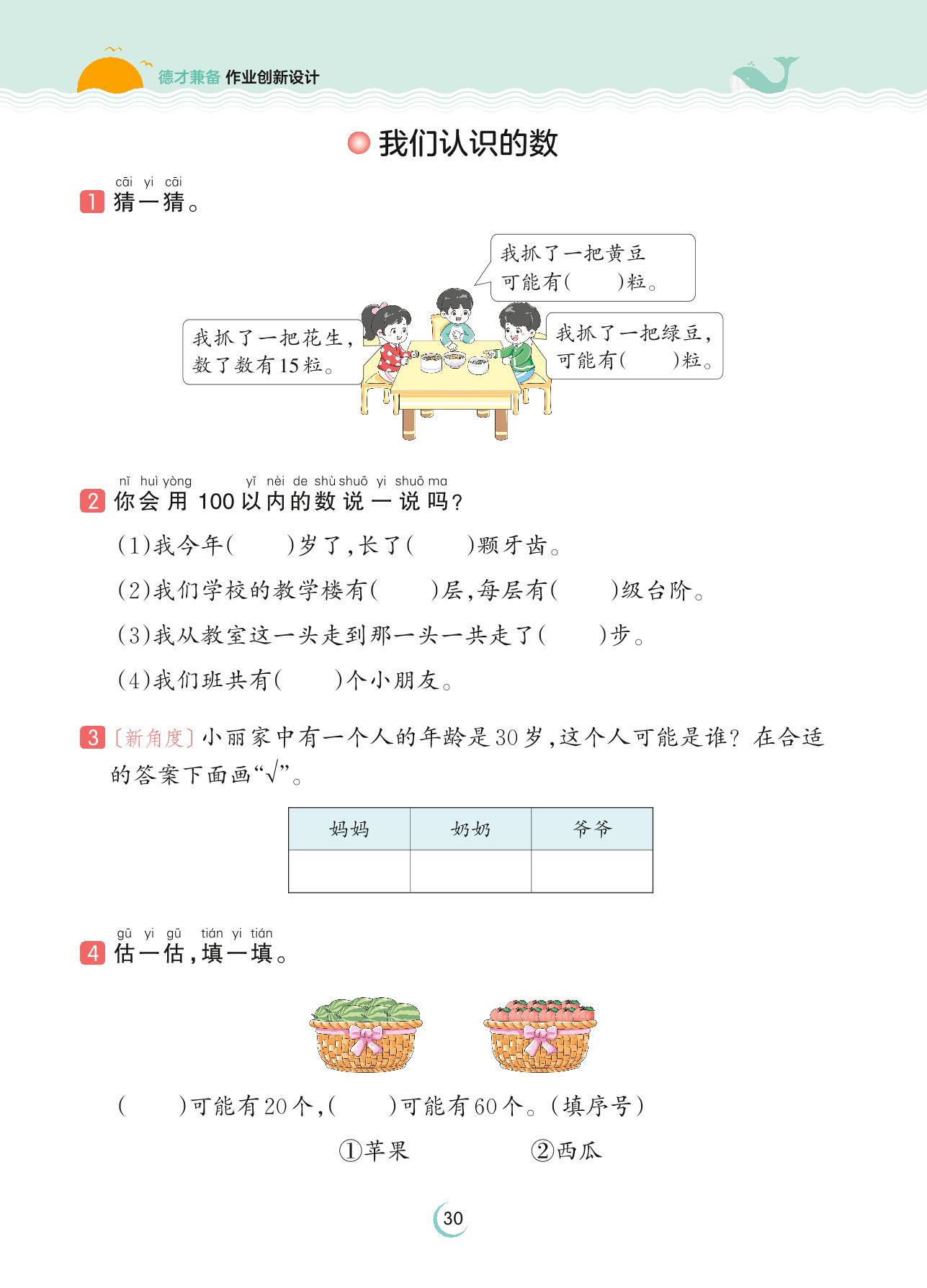 2023下册一年级数学苏教版 第三单元 认识100以内的数——我们认识的数