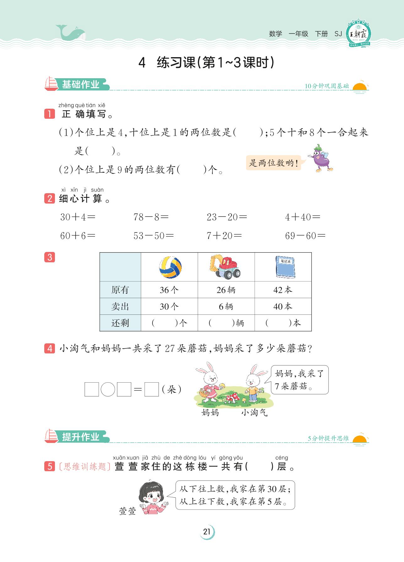 2023下册一年级数学苏教版 第三单元 认识100以内的数——4 练习课(第1~3课时)