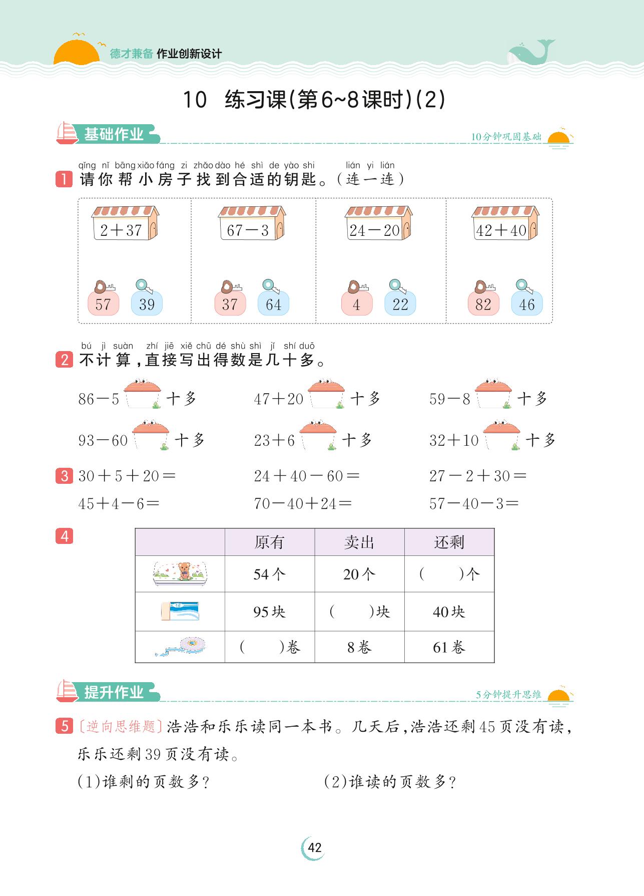 2023下册一年级数学苏教版 第四单元 100以内的加法和减法(一)——10 练习课(第6~8课时)(2)