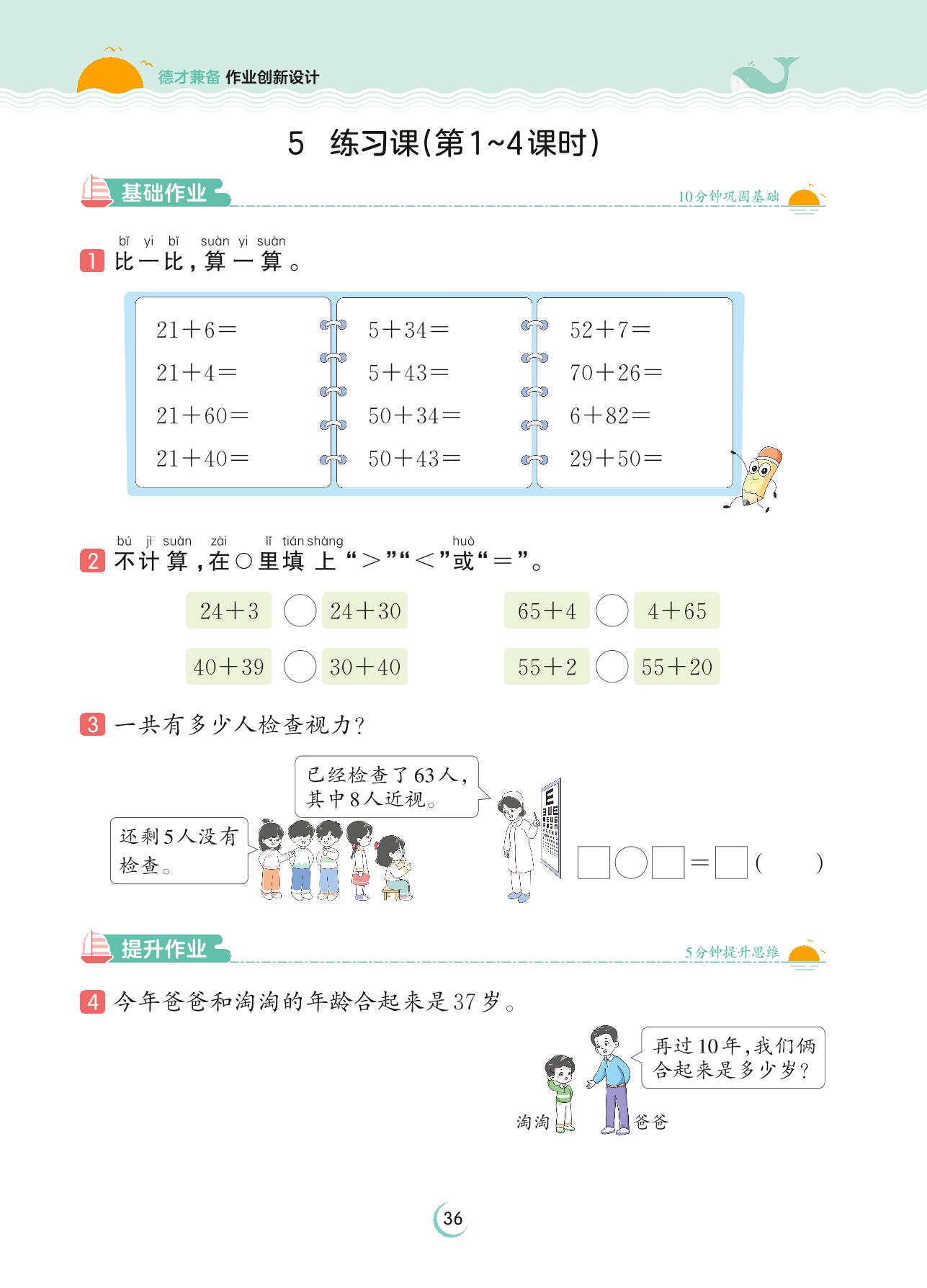 2023下册一年级数学苏教版 第四单元 100以内的加法和减法(一)——5 练习课(第1~4课时)