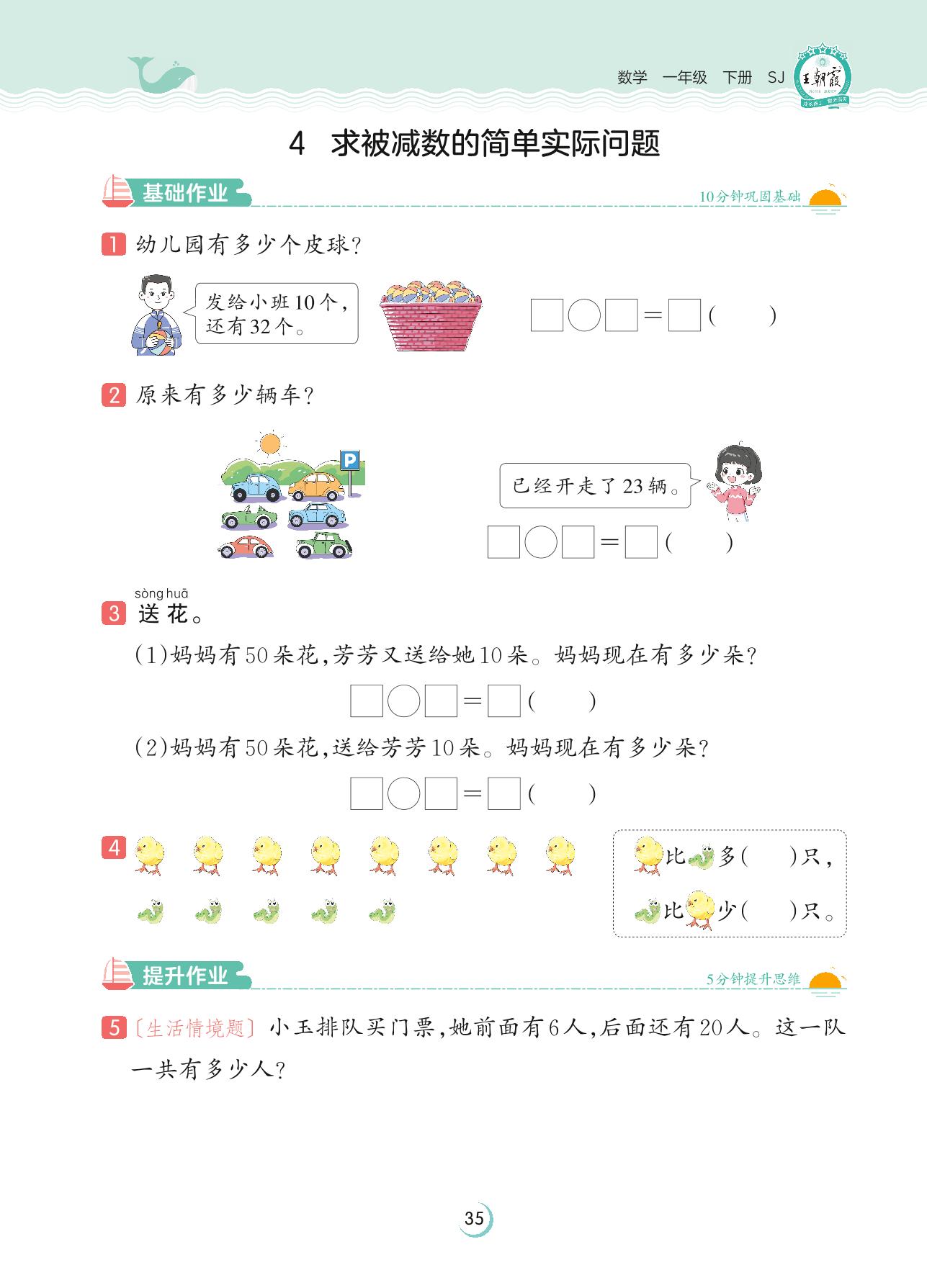 2023下册一年级数学苏教版 第四单元 100以内的加法和减法(一)——4 求被减数的简单实际问题