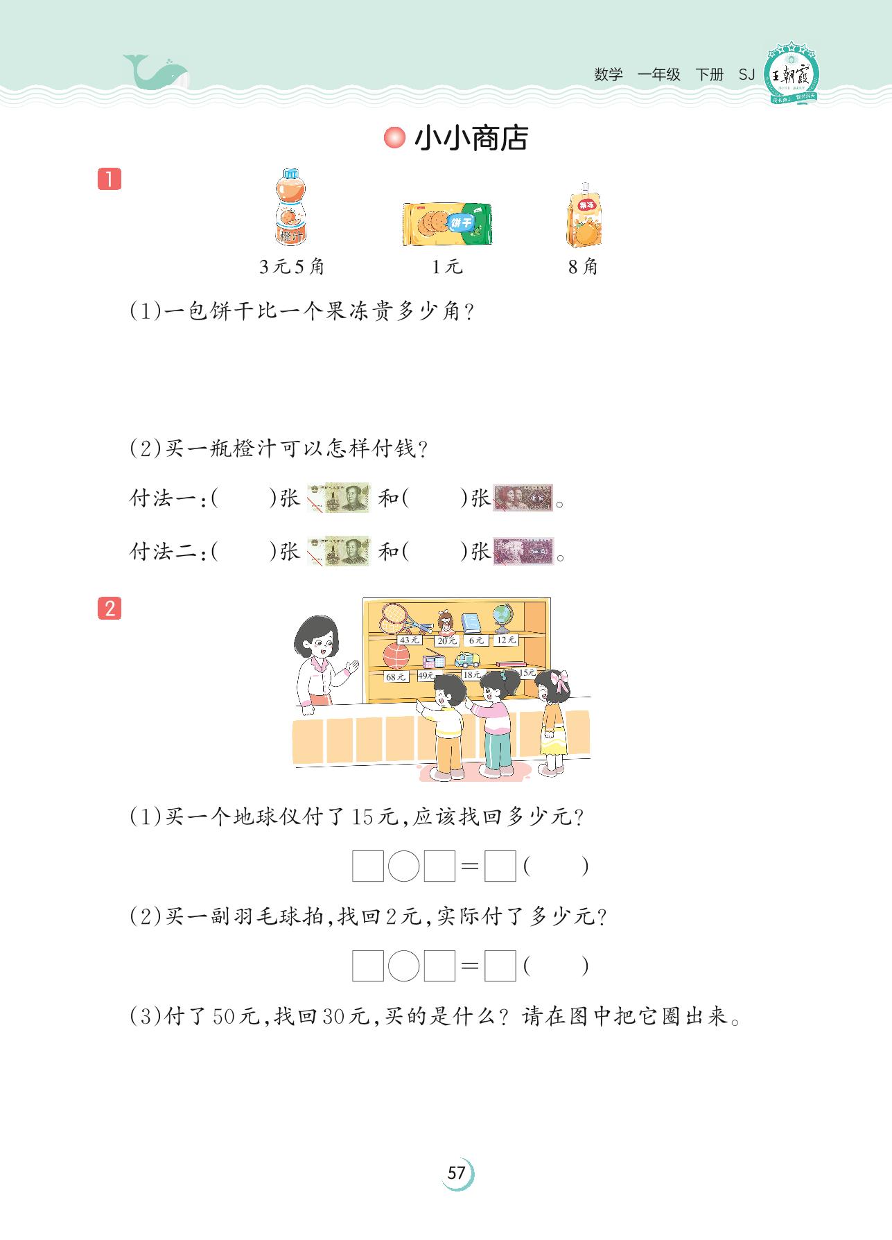 2023下册一年级数学苏教版 第五单元 元、角、分——小小商店