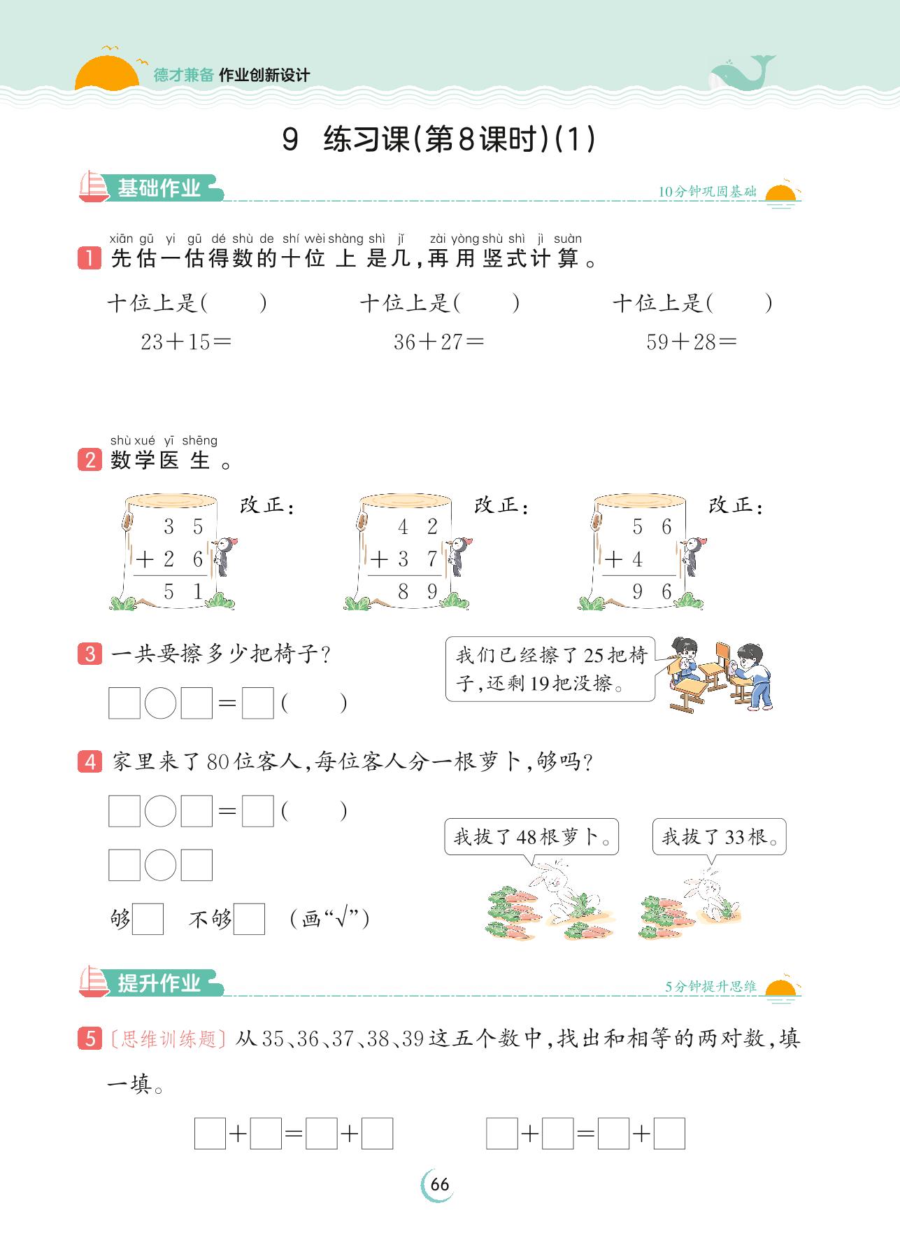 2023下册一年级数学苏教版 第六单元 100以内的加法和减法(二)——9 练习课(第8课时)(1)