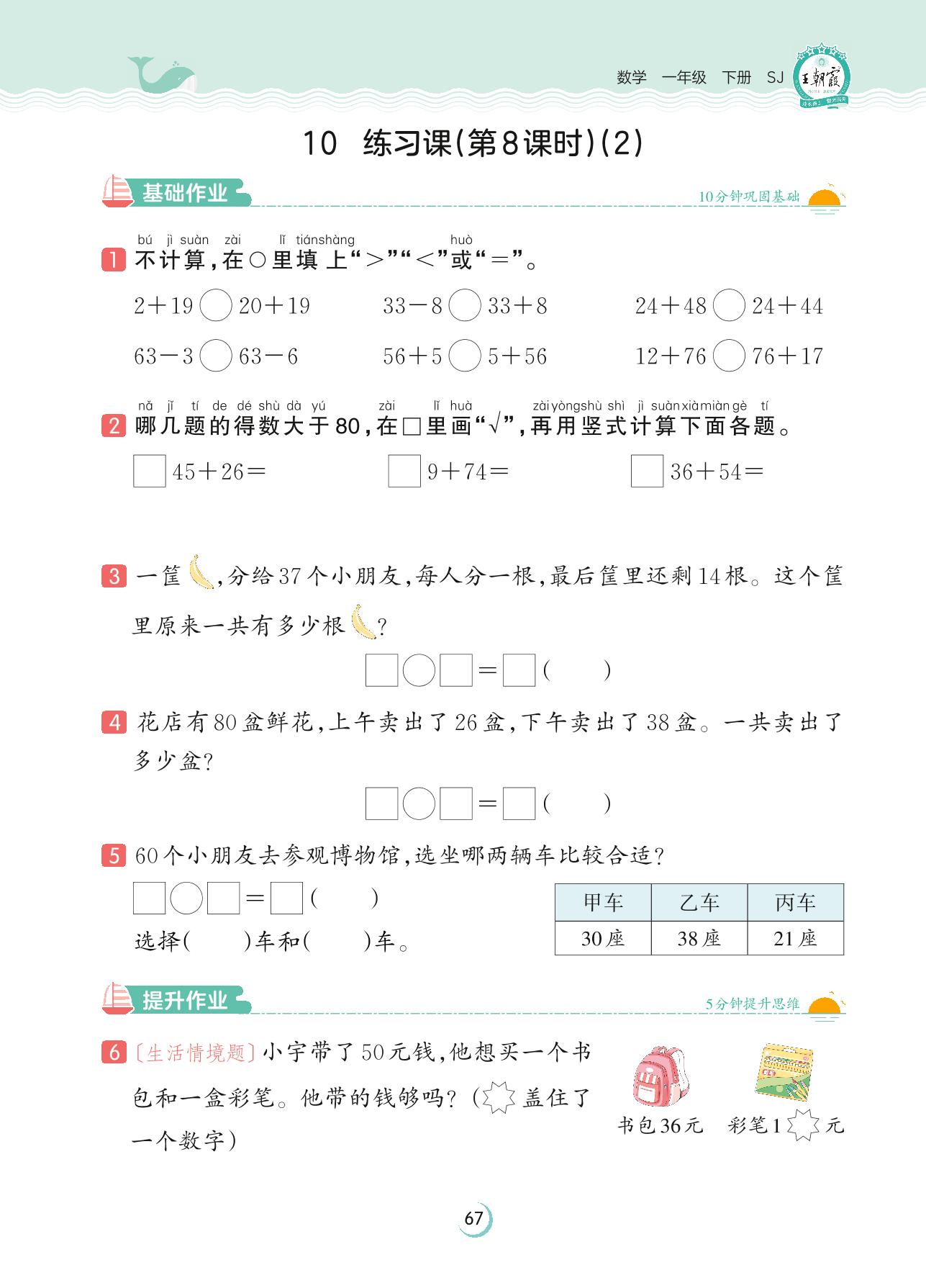 2023下册一年级数学苏教版 第六单元 100以内的加法和减法(二)——10 练习课(第8课时)(2)