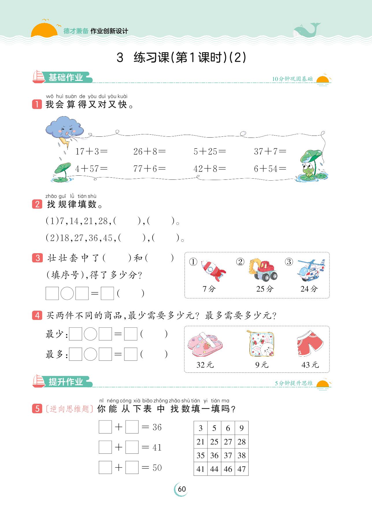 2023下册一年级数学苏教版 第六单元 100以内的加法和减法(二)——3 练习课(第1课时)(2)