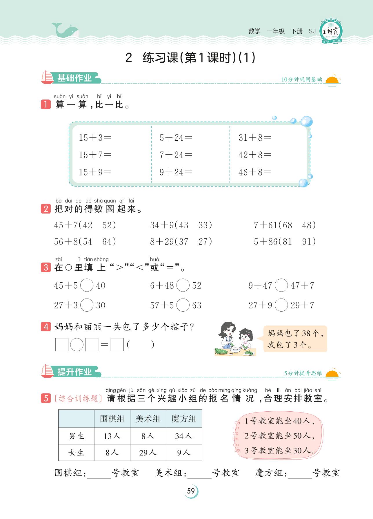 2023下册一年级数学苏教版 第六单元 100以内的加法和减法(二)——2 练习课(第1课时)(1)