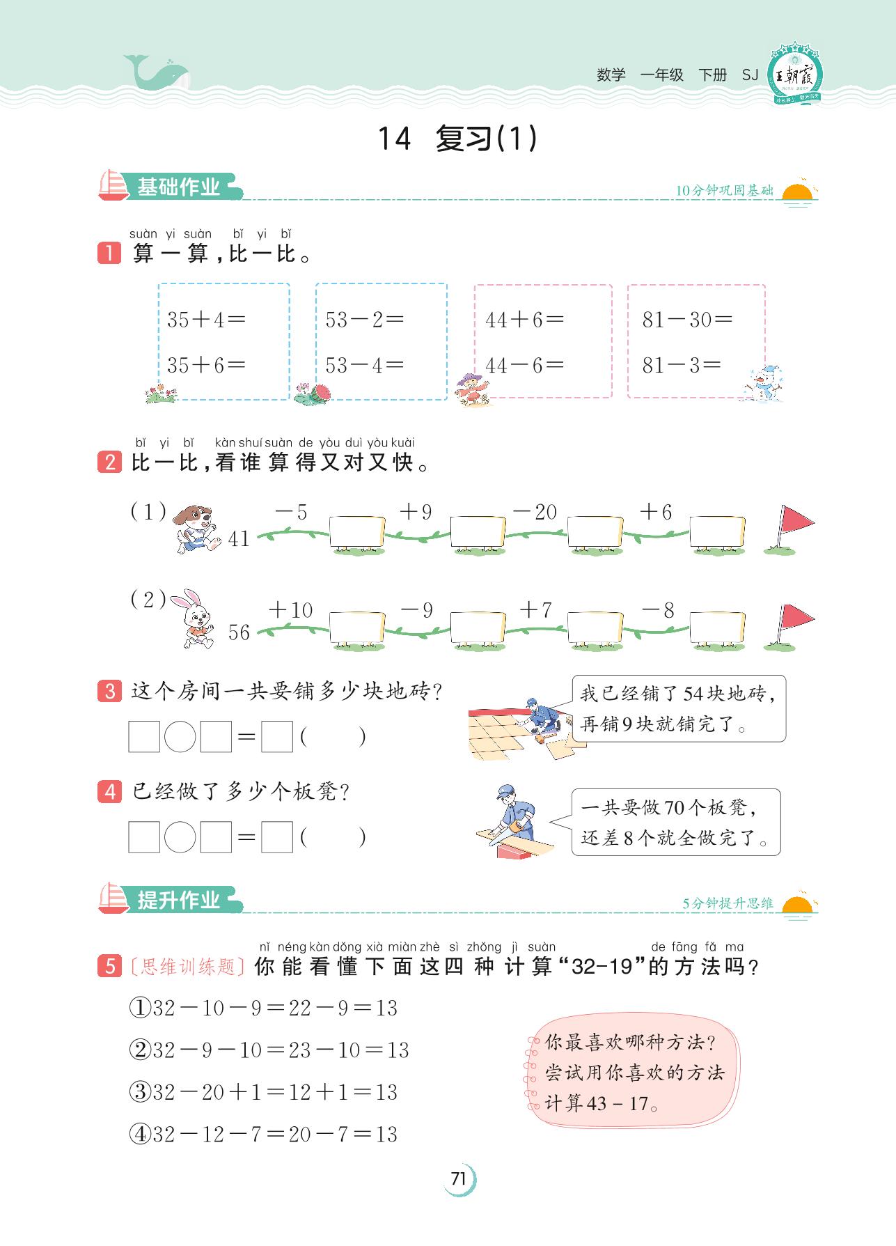 2023下册一年级数学苏教版 第六单元 100以内的加法和减法(二)——14 复习(1)