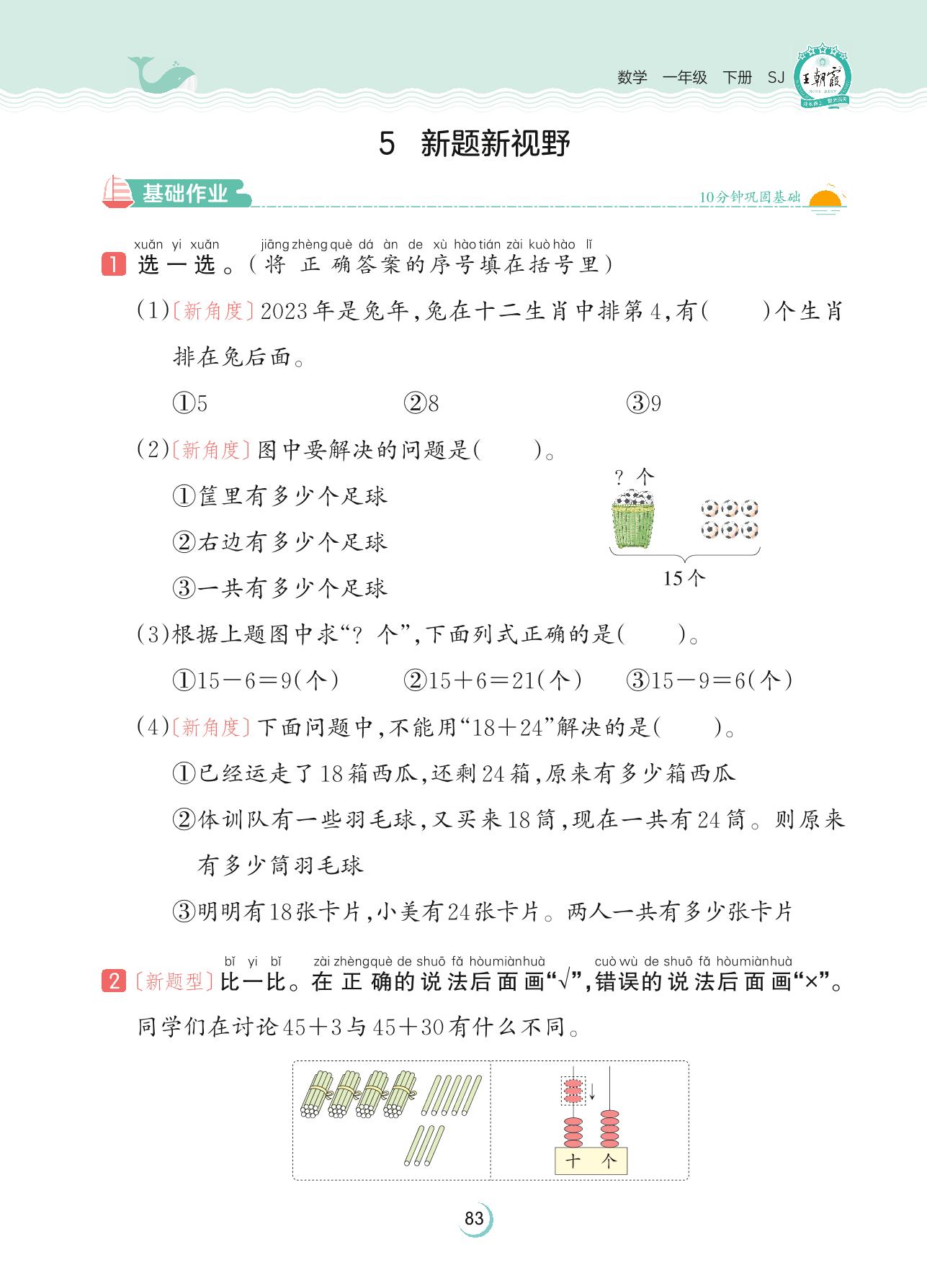 2023下册一年级数学苏教版 第七单元 期末复习——5 新题新视野