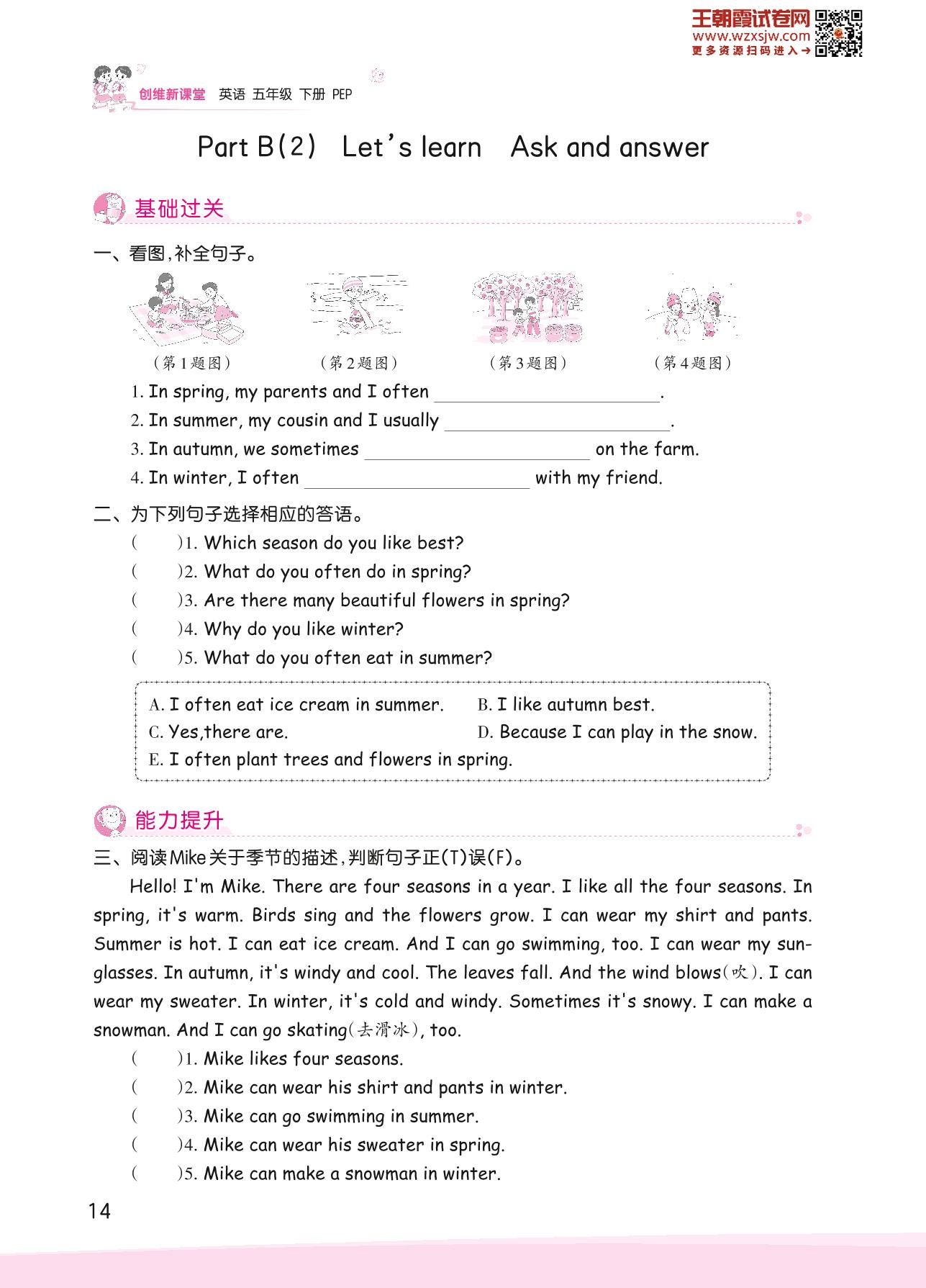 2023下册五年级英语人教PEP版 Unit 2 Part B(2)—Let’s learn Ask and answer