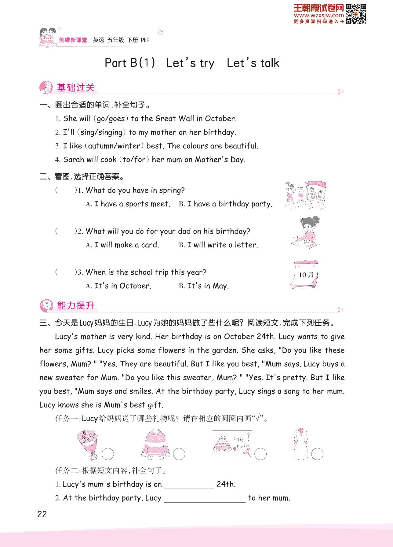 2023下册五年级英语人教PEP版 Unit 3 Part B(1)—Let’s try Let’s talk