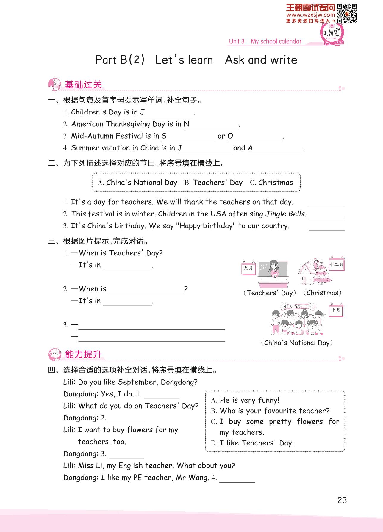 2023下册五年级英语人教PEP版 Unit 3 Part B(2)—Let’s learn Ask and write