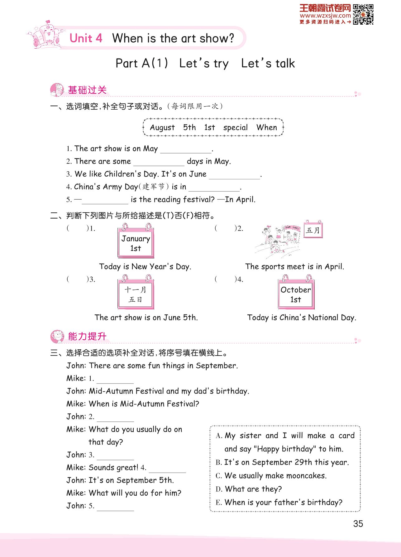 2023下册五年级英语人教PEP版 Unit 4 Part A(1)—Let’s try Let’s talk