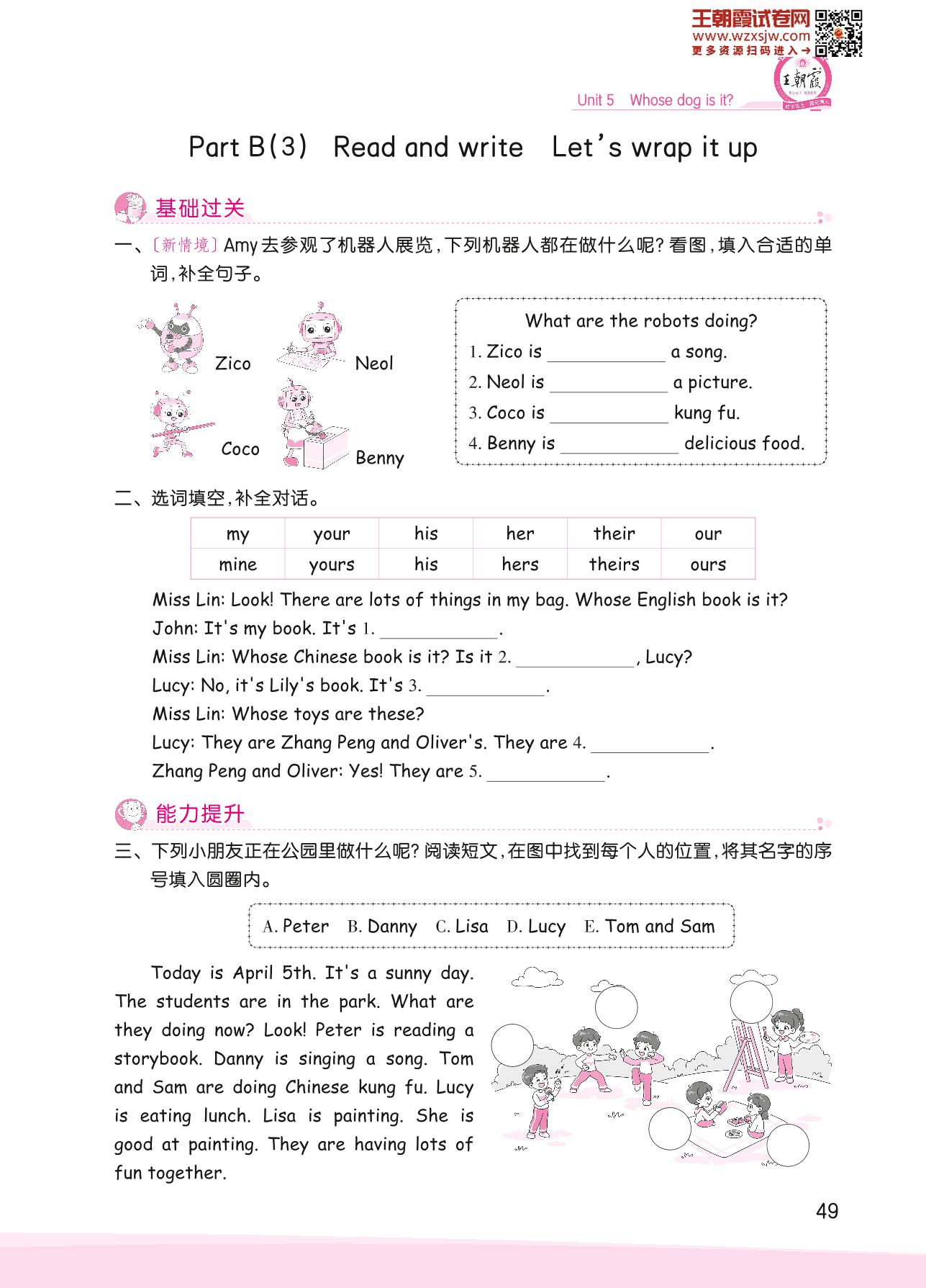2023下册五年级英语人教PEP版 Unit 5 Part B(3)—Read and write Let’s wrap it up
