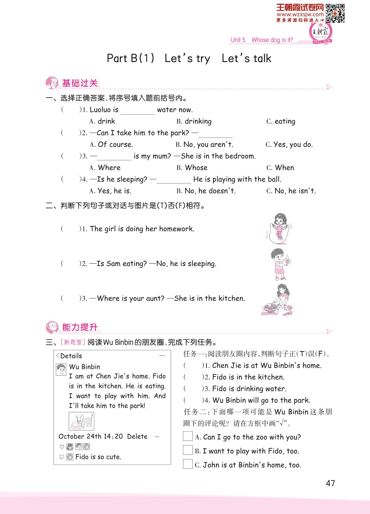 2023下册五年级英语人教PEP版 Unit 5 Part B(1)—Let’s try Let’s talk