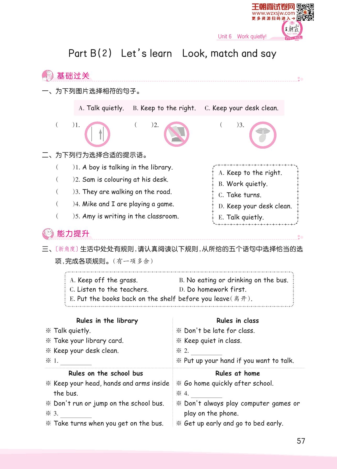 2023下册五年级英语人教PEP版 Unit 6 Part B(2)—Let’s learn Look,match and say