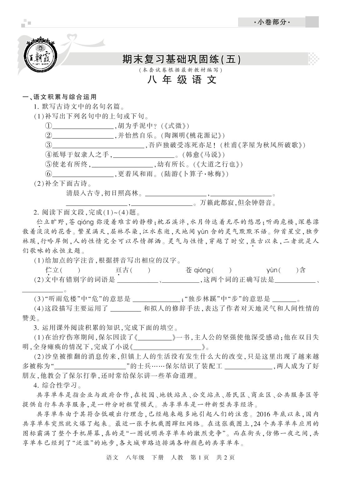 王朝霞期末小卷期末复习基础巩固练(五)一部编八语八年级下册语文(人教版)【0】