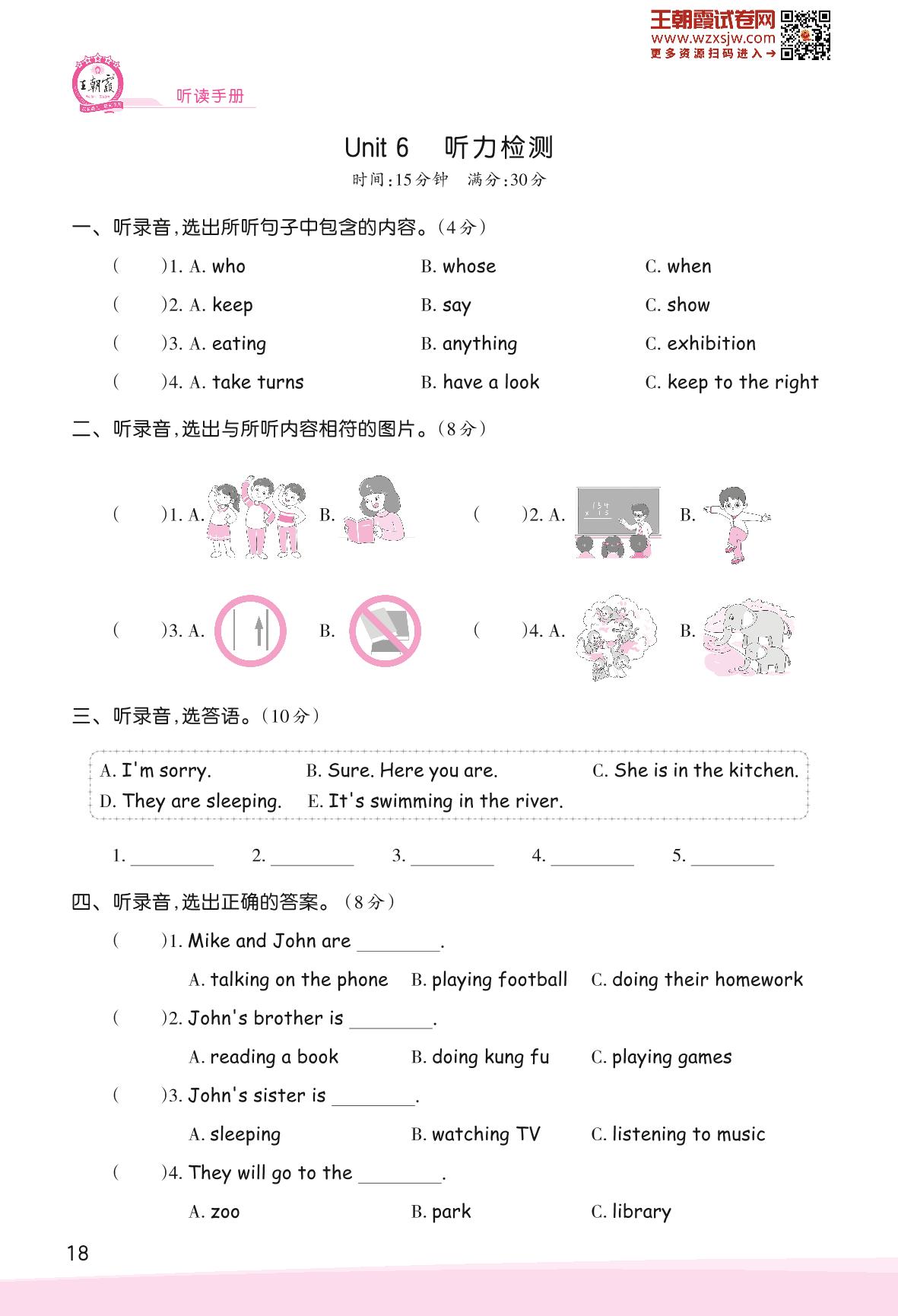 2023下册五年级英语人教PEP版 Unit 6 Work quietly—听力检测