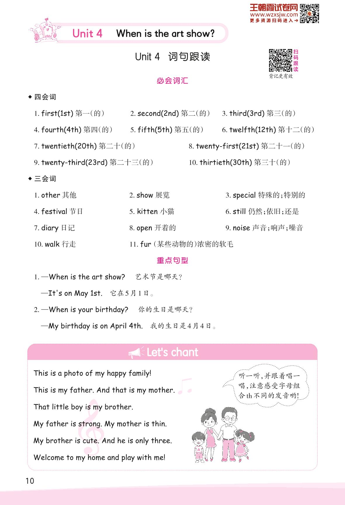 2023下册五年级英语人教PEP版 Unit 4 When is the art show ?—词句跟读
