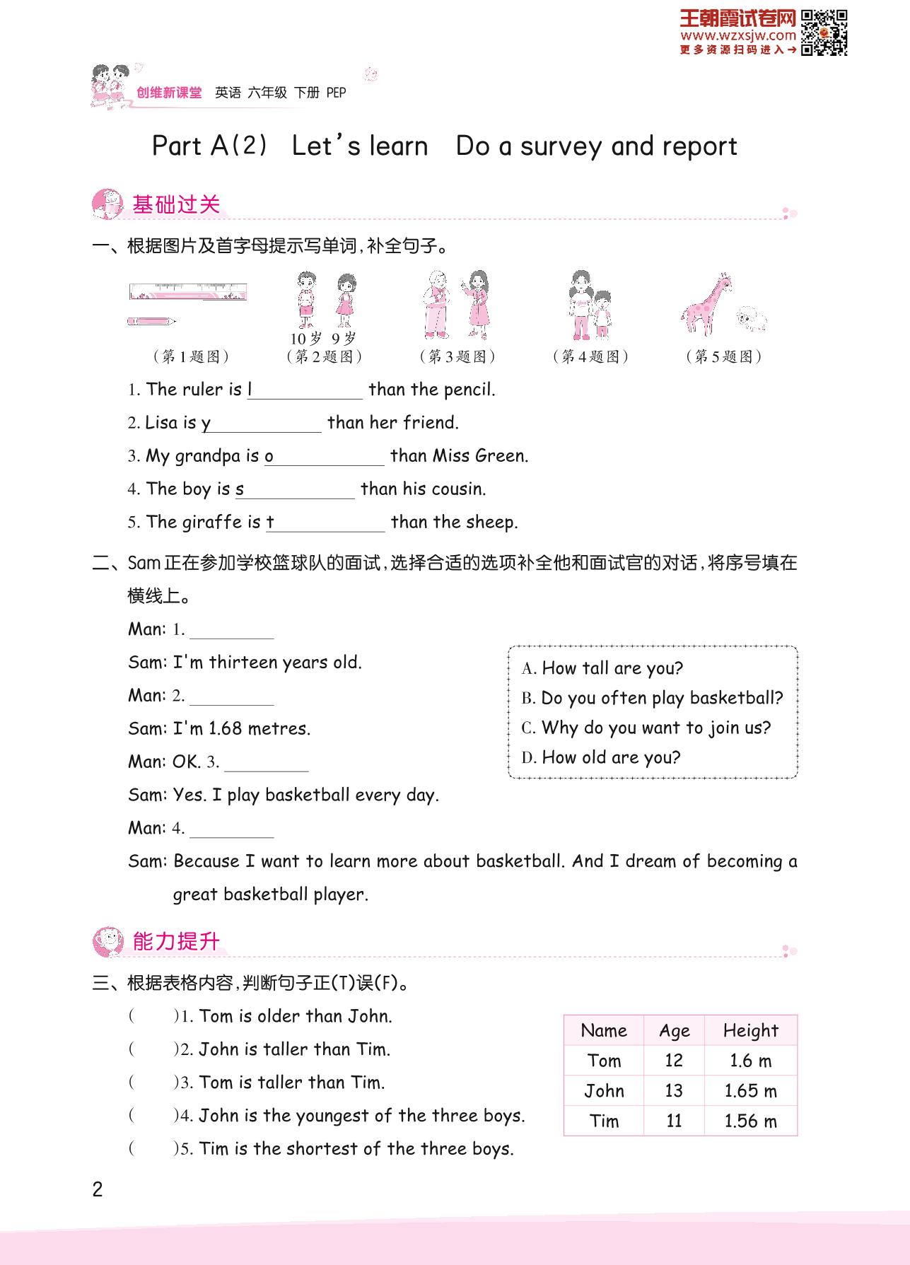 2023下册六年级英语人教PEP版 Unit 1 Part A(2)—Let’s learn Do a survey and report