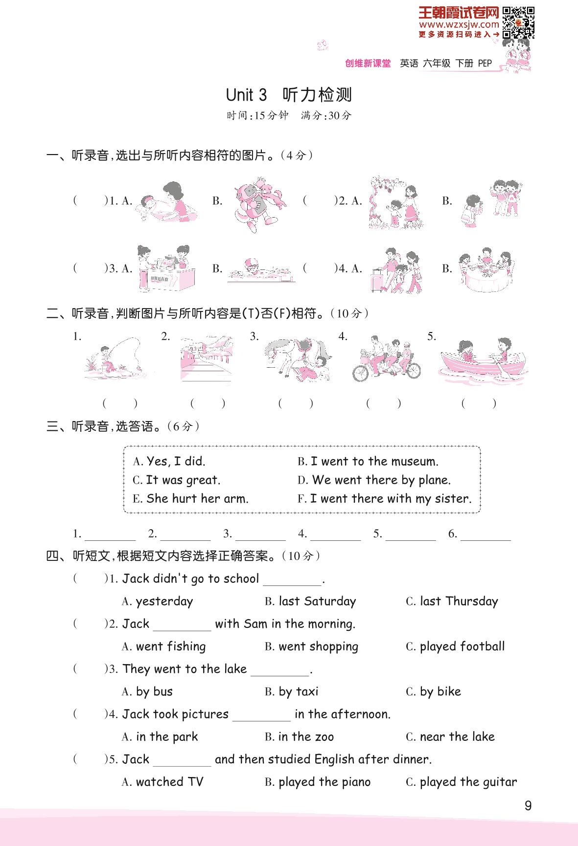 2023下册六年级英语人教PEP版 Unit 3 Where did you go?—听力检测