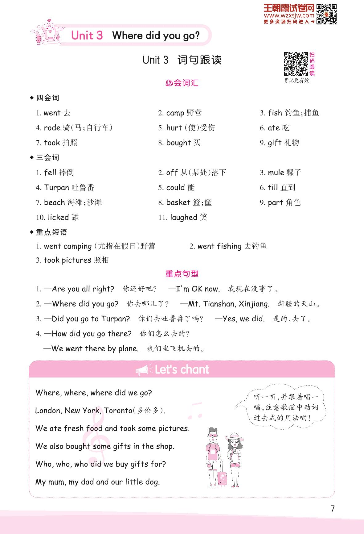 2023下册六年级英语人教PEP版 Unit 3 Where did you go?—词句跟读